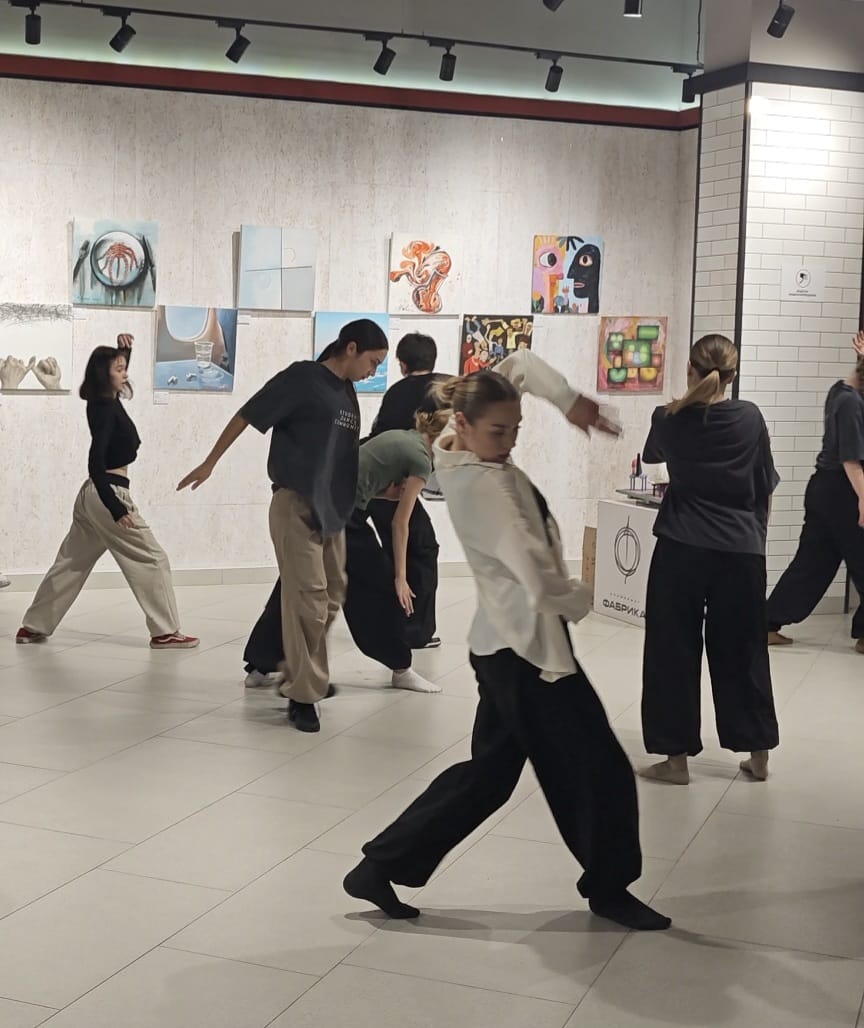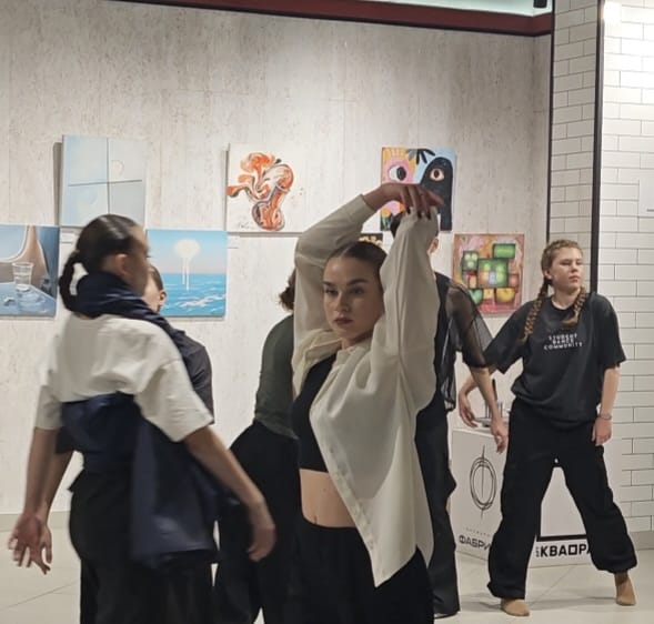 Студенты - хореографы (ст. преподаватель О.А.Даукаева) выбрали для себя по 1 работе с выставки и, переосмыслив, поставили  собственные танцевальные композиции, которые были собраны практически в спектакль.