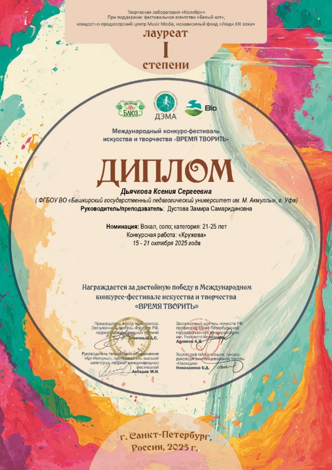 Триумф голоса: студентка кафедры музыкального и хореографического образования Ксения Дьячкова завоевала престижные награды на вокальных конкурсах!