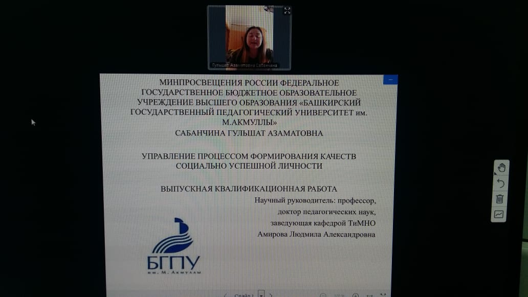 20 июня 2020 года были проведены и успешно завершились государственные аттестационные испытания магистрантов по направлению 44.04.01 Педагогическое образование (уровень магистратуры по программе «Менеджмент в образовании и культуре»)Испытания были организованы в инновационном - дистанционном режиме с привлечением потенциальных работодателей. Высокий уровень подготовки выпускников был отмечен в ходе и защит выпускных квалификационных работ. Состав комиссии формировался большей частью из работодателей. В состав комиссии вошли председатель экзаменационной комиссии - начальник Управления образования Администрации городского округа город Уфа Республики Башкортостан  Е.Р. Хаффазова, директора ведущих школ, заведующие детскими садами г. Уфы.