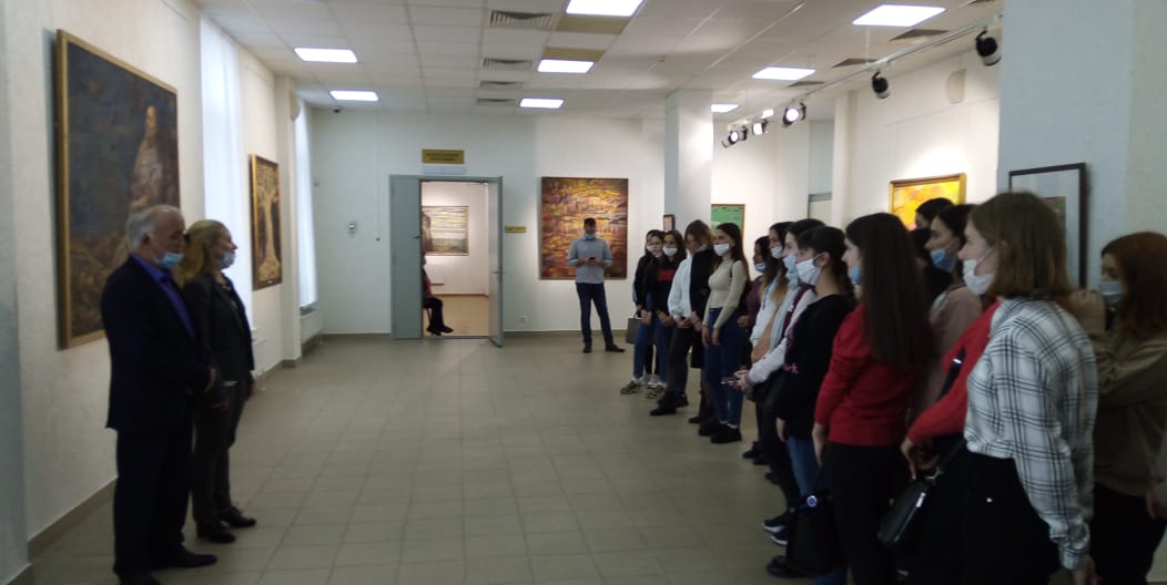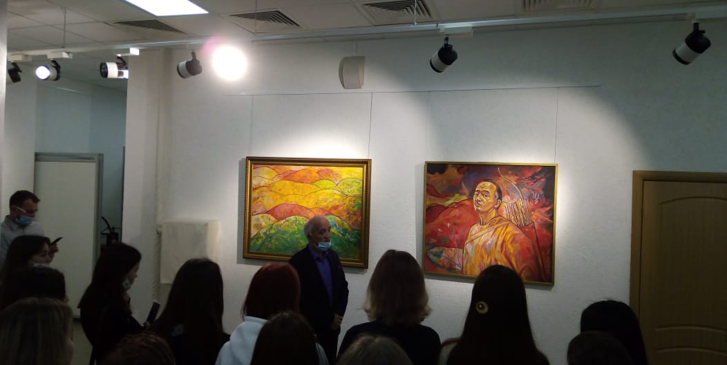 Хатип Фазылов поделился воспоминаниями из детства о родной деревне Янаулово Абзелиловского района Башкортостана, рассказал о первой встрече со своим наставником, крупнейшим художником, действительным членом Академии художеств России Ахматом Лутфуллиным, оказавшим значительное влияние на становление его творчества, формирование духовного мира. Мастер рассказал первокурсникам о картинах, представленных в экспозиции: о пейзажах, о древе жизни, национальных традициях, легендах, сэсэнах, героях-башкирах времен гражданской и ВОВ, а также о женском образе  матери - нежном, глубоком и близком его сердцу…