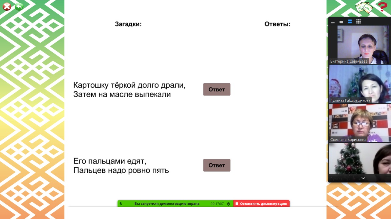 25 декабря 2020 г. Е.А. Савельева провела обучающий вебинар «Электронные дидактические игры в современном образовательном пространстве» для учителей гимназии. Учителя начальных классов и среднего звена познакомились с методикой проведения электронной игры «Национальные кухни Башкортостана». Игра планируется к внедрению в учебный и внеучебный процесс гимназии в 2021 году.