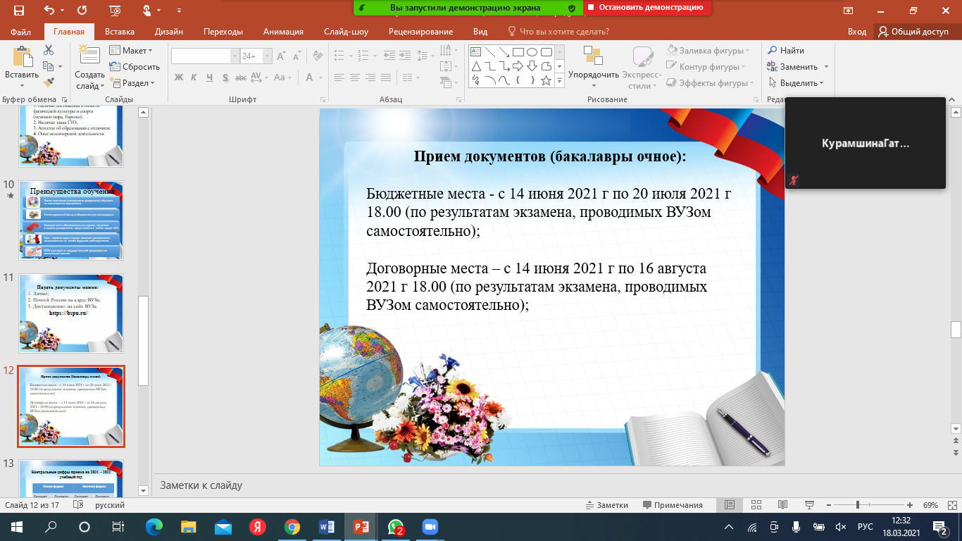 18.03.2021 года, в рамках профориентационной работы кафедры Теорий и методик начального образования Института педагогики, были проведены мастер-классы к.п.н., доцентом Мешковой Л.М. «Как стать учителем начальных классов» с учащимися МОБУ СОШ с. Миловка Уфимского р-на РБ и учащимися МАОУ СОШ №8 г. Туймазы РБ. Обучающиеся узнали о престижности профессии учителя начальных классов, познакомились с направлениями подготовки педвуза в целом, с направлениями подготовки кафедры ТиМНО ИП БГПУ им. М. Акмуллы, выяснили, какие экзамены необходимо сдать для поступления в вуз на данное направление.