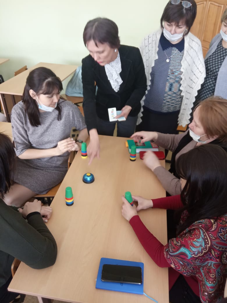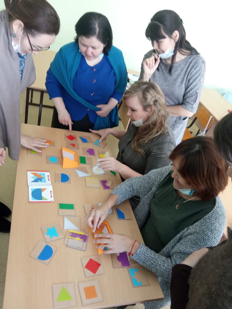 Е.А. Савельева познакомила педагогов гимназии с современными дидактическими играми, способствующие зрительно-моторной координации движений, концентрации внимания и зрительного восприятия, стимулирующие визуальное восприятие и навыки планирования. Также педагоги познакомились с методикой проведения электронного военно-исторического лото «Предметы. личного пользования солдат и офицеров времен Великой Отечественной Войны 1941-1945 гг.».
