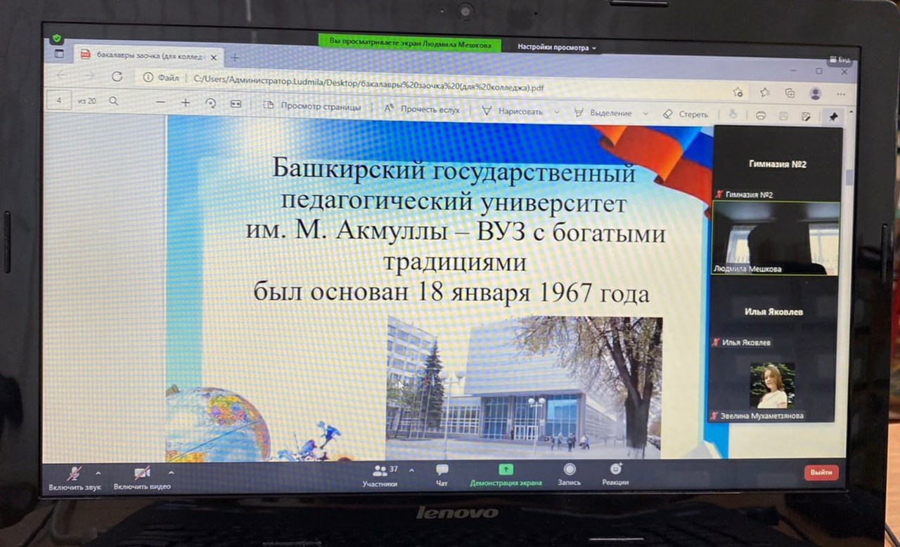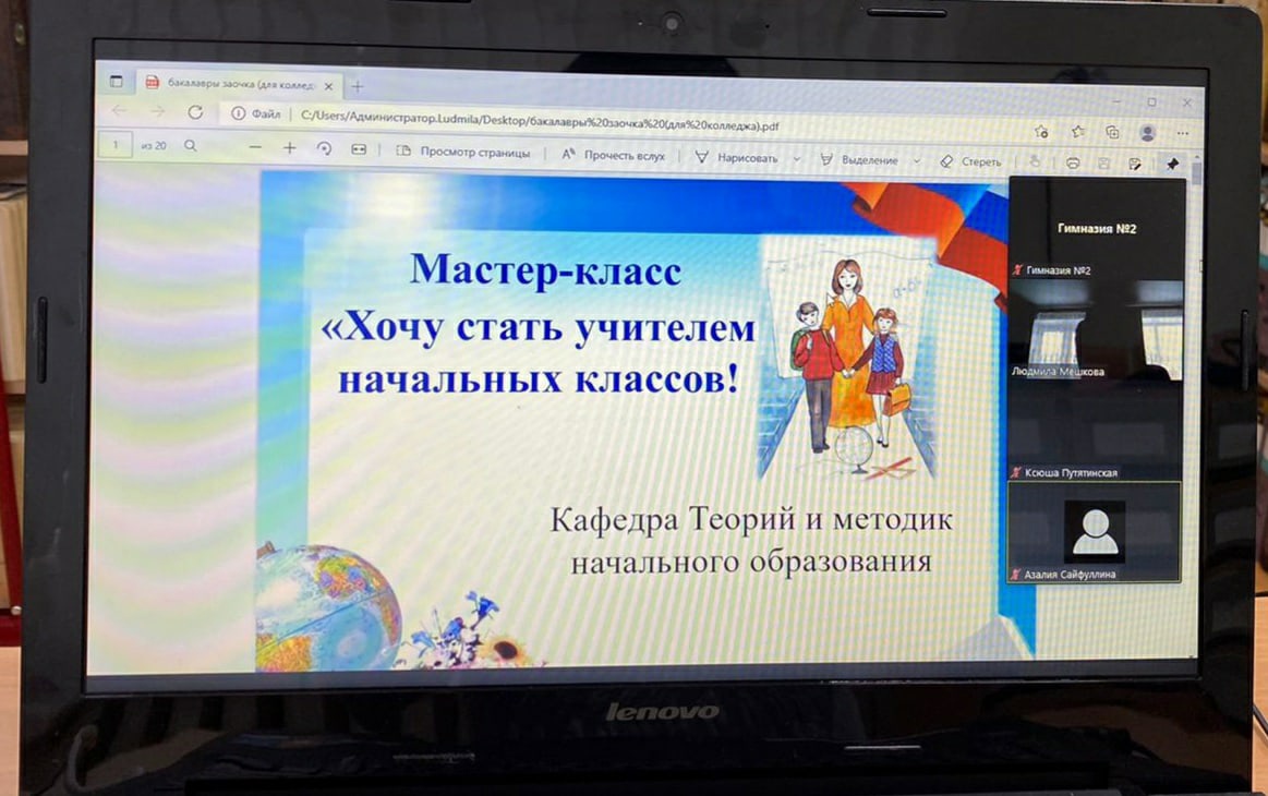 В рамках профориентационной работы кафедры Теорий и методик начального образования Института педагогики 20.11.2021 г. был проведен мастер-класс к.п.н., доцентом Мешковой Л.М. «Как стать учителем начальных классов» с с обучающимися Гимназии № 2 г. Октябрьский в дистанционном режиме. В результате проведения мастер-класса, учащиеся больше узнали о профессии учителя начальных классов, познакомились с направлениями подготовки педвуза в целом, с направлениями подготовки кафедры ТиМНО ИП БГПУ им. М. Акмуллы, выяснили, какие экзамены необходимо сдать для поступления в вуз на данное направление.