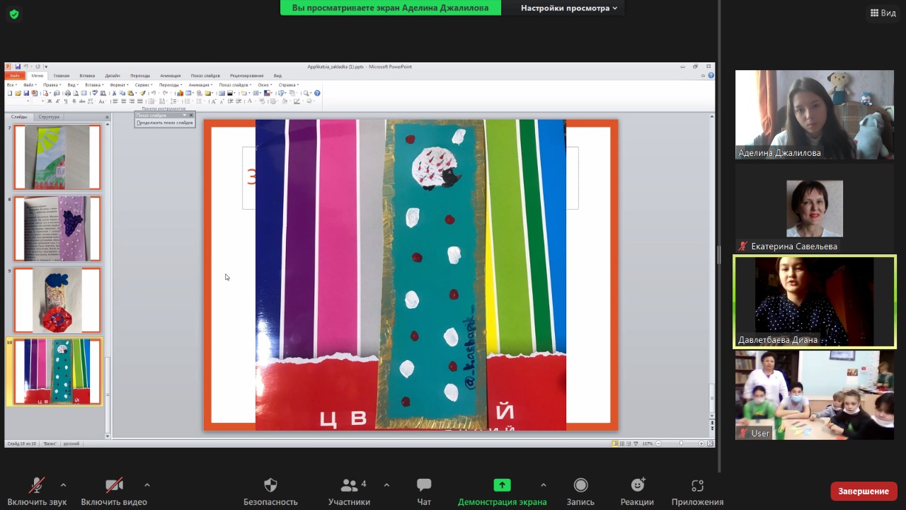 24 ноября 2021 года для маленьких пациентов Республиканской клинической психиатрической больницы волонтеры студенческого отряда «Палитра» провели творческое занятие онлайн «Закладка для книги». В мероприятии участвовали студенты 1 курса направления «Начальное образование» БГПУ им. М. Акмуллы Аделина Джалилова и Диана Давлетбаева под руководством доцента кафедры ТиМНО, руководителя студенческого волонтерского отряда «Палитра» Екатерины Савельевой. Волонтеры с помощью презентации познакомили участников мероприятия с историей появления закладки и изготовили закладку для книги.