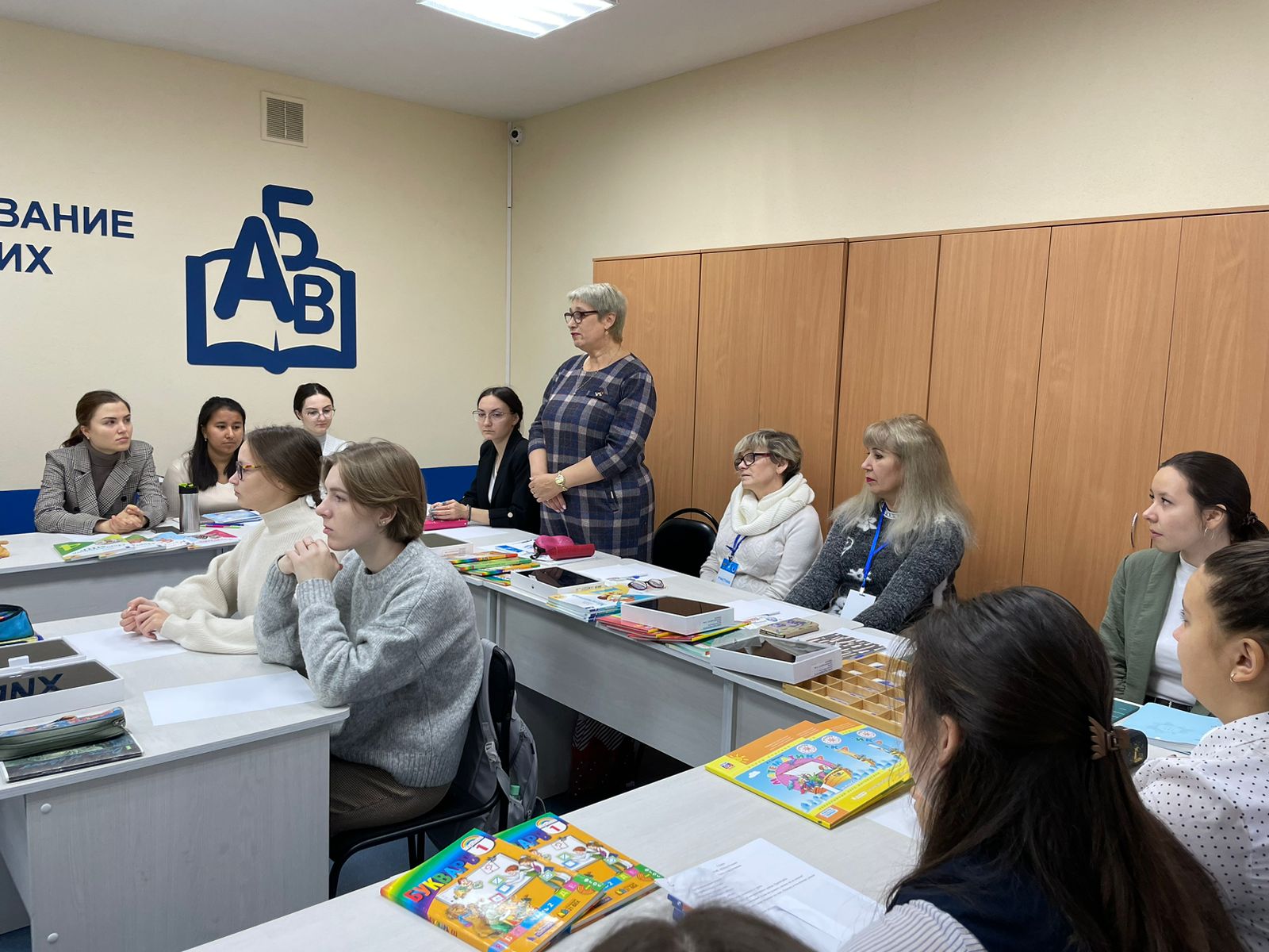 К.п.н., доцент Ибрагимова Г.Ф. провела, матер класс по методике преподавании русского языка в начальной школе; к.п.н., доцент Фаткуллина Л.К. провела, матер класс по методике преподавания окружающего мира; к.п.н., доцент Мешкова Л.М. ознакомила и продемонстрирована способы работы с оборудованием в соответствии с обновленным ФГОС НОО по формированию личностных и метапредметных компетенций у младшего школьника. В форме круглого стола совместно со студентами и преподавателями кафедры заведующий кафедрой ТиМНО д.п.н., профессор Янгирова В.М. ознакомила с обновленным ФГОС НОО и с УМК согласно приказу МП РФ.
