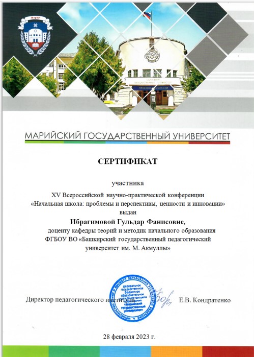 Об участии доцента Г.Ф. Ибрагимовой XV Всероссийской НПК «Начальная школа: проблемы и перспективы, ценности и инновации»