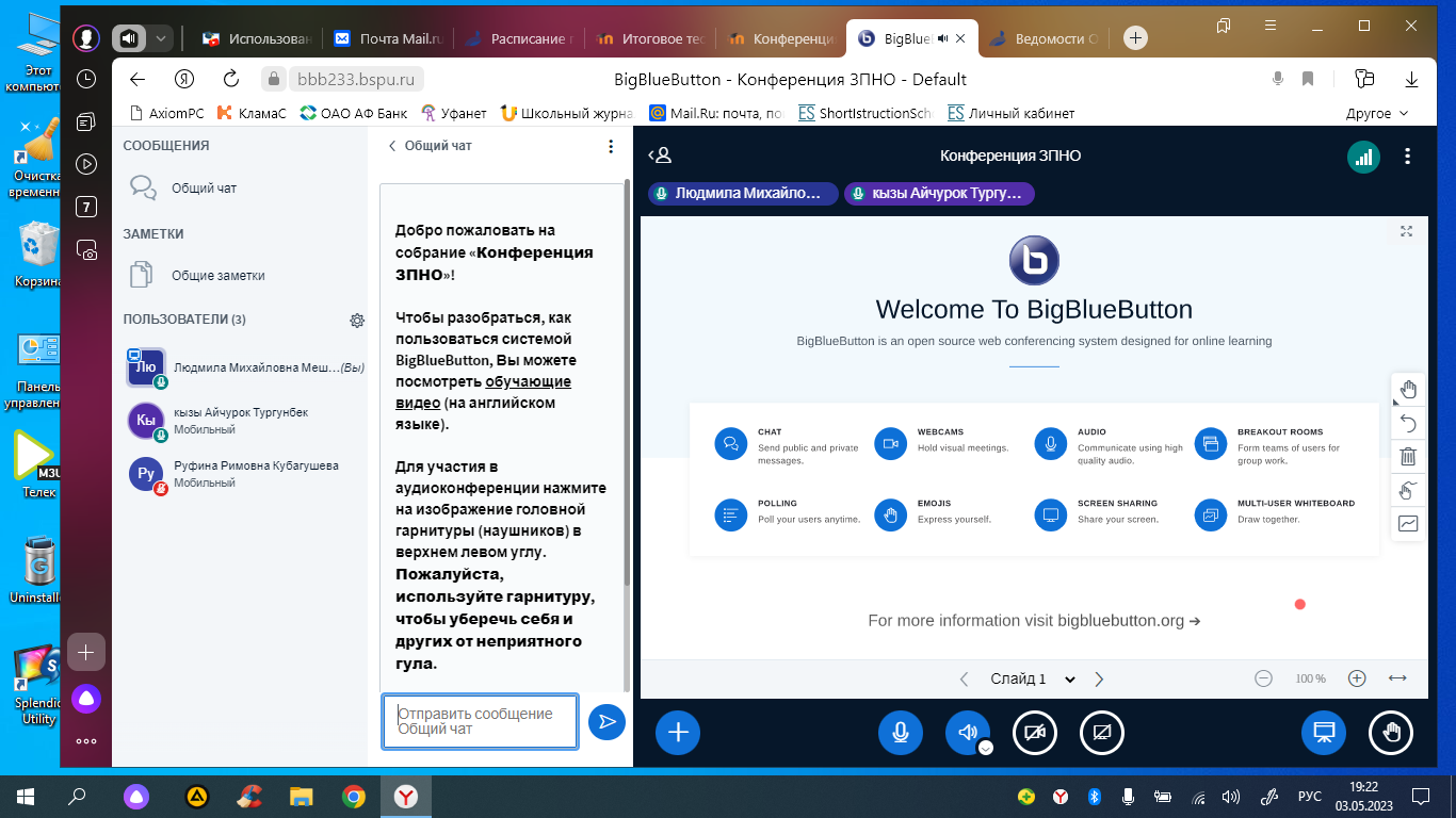 03 мая 2023 г. прошла итоговая конференция по производственной (педагогической) практике в начальной школе для студентов 2 курса ОЗО направления 44.03.01 Педагогическое образование, профиль «Начальное образование» (руководители практики – к.п.н., доц. кафедры ТиМНО Л.М. Мешкова и  асс. А.Р. Диндарьянова). Сроки проведения практики - с 25 февраля по 29 апреля 2023 г. Студенты выступили с отчетами о проделанной работе, поделились впечатлениями и оценили свою готовность к работе по профессии.