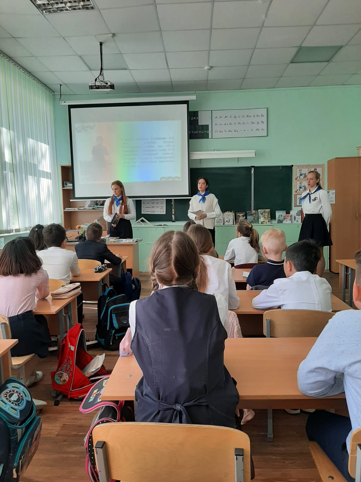05 мая 2023 года студенты 1 и 2 курса направления «Начальное образование» Надолько Елена, Егорова Елизавета и Хайдарова Алина под руководством к.ф.н., доцента Ю.А. Жуковой и заведующей кафедрой ТиМНО, д.п.н., профессора В.М. Янгировой провели литературную беседу в двух 4-х классах МАОУ «Школа № 8 им. И.П. Хатунцева» ГО г.Уфа, приуроченную ко Дню Победы.