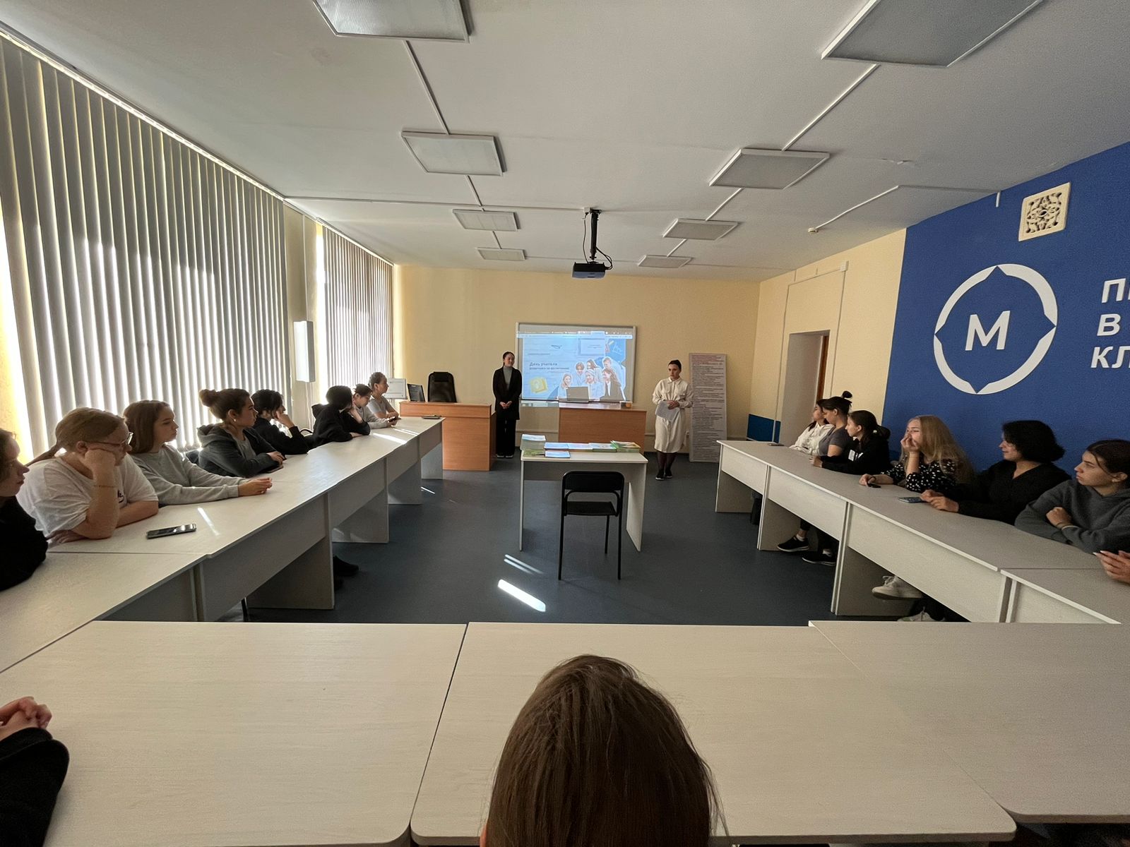 2 октября 2023 года в рамках просветительских мероприятий «Разговор о важном» для студентов 1 и 2 курсов, обучающихся по направлению «Начальное образование», была организована беседа на тему «День Учителя.