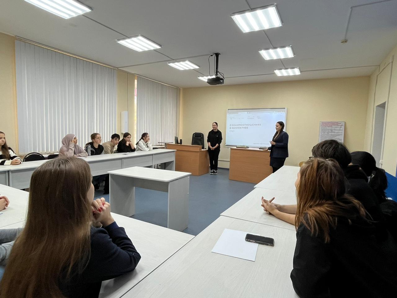 09 октября 2023 года в рамках просветительских мероприятий «Разговор о важном» для студентов 1 и 2 курсов, обучающихся по направлению «Начальное образование», была организована беседа на тему «О взаимоотношениях в коллективе».