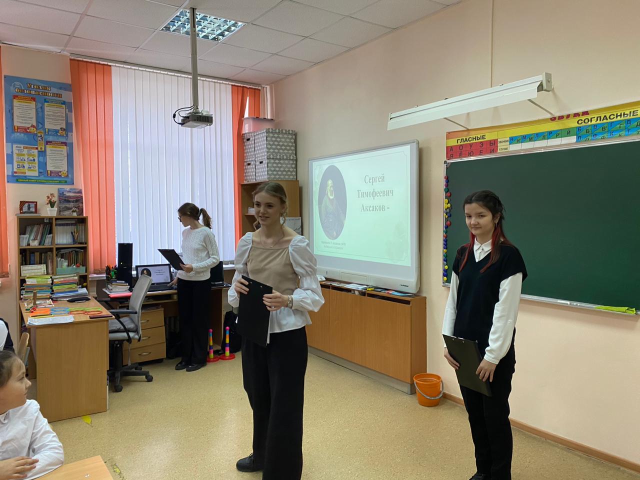 20 ноября 2023 г. на базовой площадке кафедры ТиМНО – в МАОУ Школа №8 им. И.П. Хатунцева г. Уфы – студенты 2 курса в лице Агадуллиной Евгении, Зинченко Арины и Леонидовой Елены провели внеклассное занятие по литературному чтению с учащимися 4 класса (классный руководитель – Г.Р. Батталова), посвященное детству русского писателя С.Т. Аксакова и его автобиографической книге  «Детские годы Багрова-внука» (научный руководитель – к.ф.н., доц. Ю.А. Жукова).