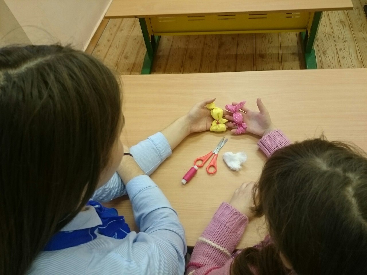 Ведущие урока Ирина Хисматуллина и Ангелина Козырева (1 курс, направление «Начальное образование») рассказали воспитанницам группы «Подсолнущки» о том, что на занятии девочки будут учиться создавать из тряпочек куколку - зайчика на пальчик. На Руси, с древних времен такого зайчика делали детям, чтобы они имели друга, собеседника. Зайчик одевался на пальчик и всегда был рядом с малышом. Эту игрушку родители давали детям, когда уходили из дома и если ребенку становиться скучно или одиноко, то к зайчику можно было обратиться как к другу, поговорить с ним и просто поиграть. Это был одновременно и  друг и оберег.