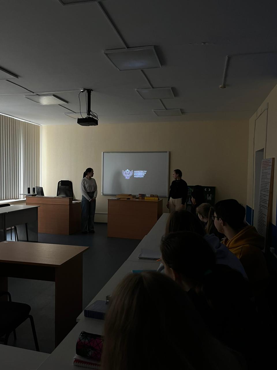 8 февраля 2024 года, в рамках курса «Россия – мои горизонты», для студентов 1 курсов, обучающихся по направлению Педагогическое образование профиль Начальное образование, было проведено профориентационное занятие «Россия мобильная: узнаю о профессиях и достижениях в транспортной отрасли». В качестве докладчиков выступили студентки 2 курса направления Педагогическое образование профиль Начальное образование Елизавета Егорова и Мырзайым Чотбаева  (руководитель – Е.А. Савельева, к.п.н., доцент кафедры ТиМНО).