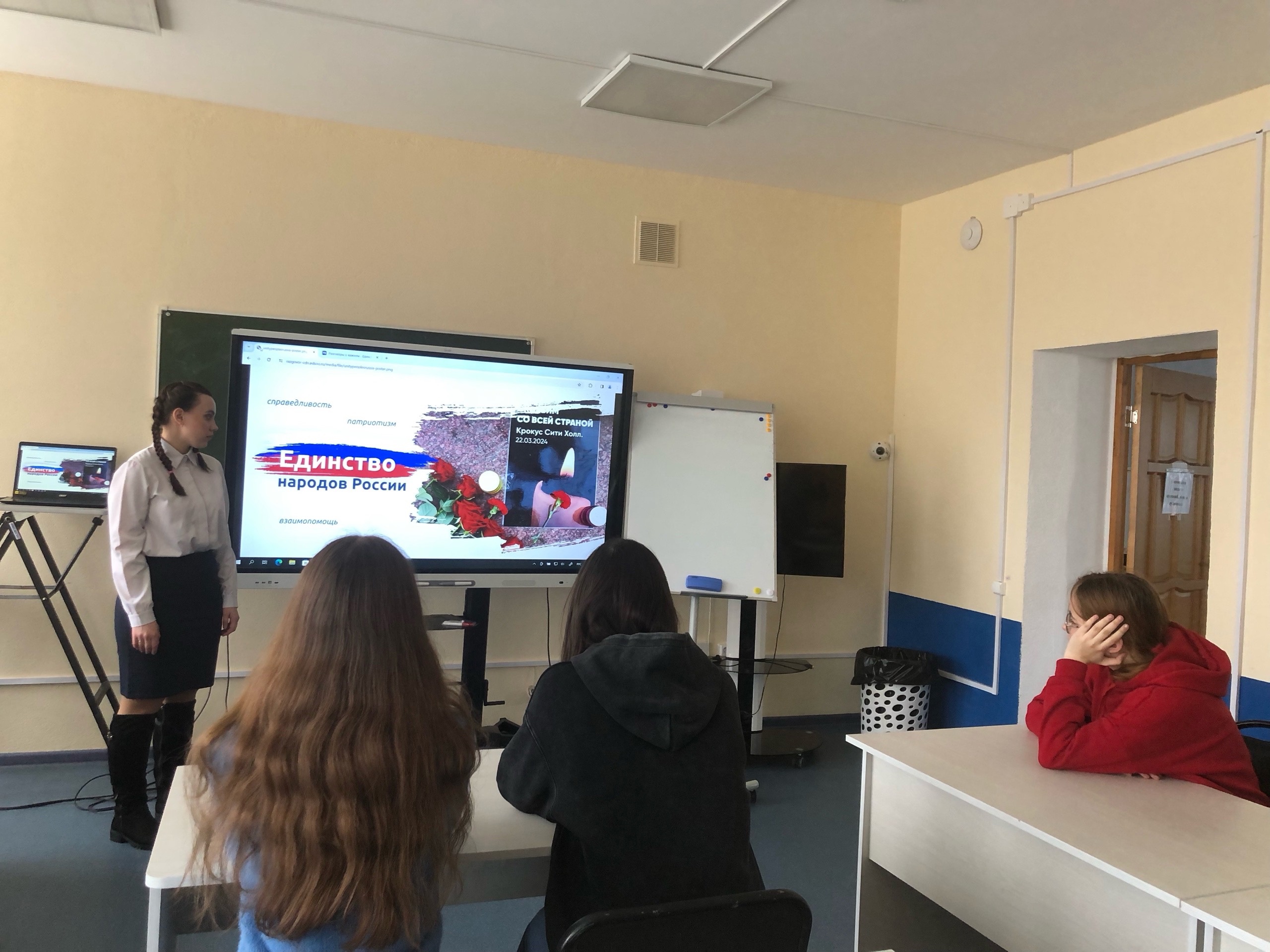 25 марта 2024 года в рамках просветительских мероприятий «Разговор о важном» для студентов 1 курсов, обучающихся по направлению Педагогическое образование, профиль «Начальное образование», была организована беседа на тему «ЕДИНСТВО НАРОДОВ РОССИИ».