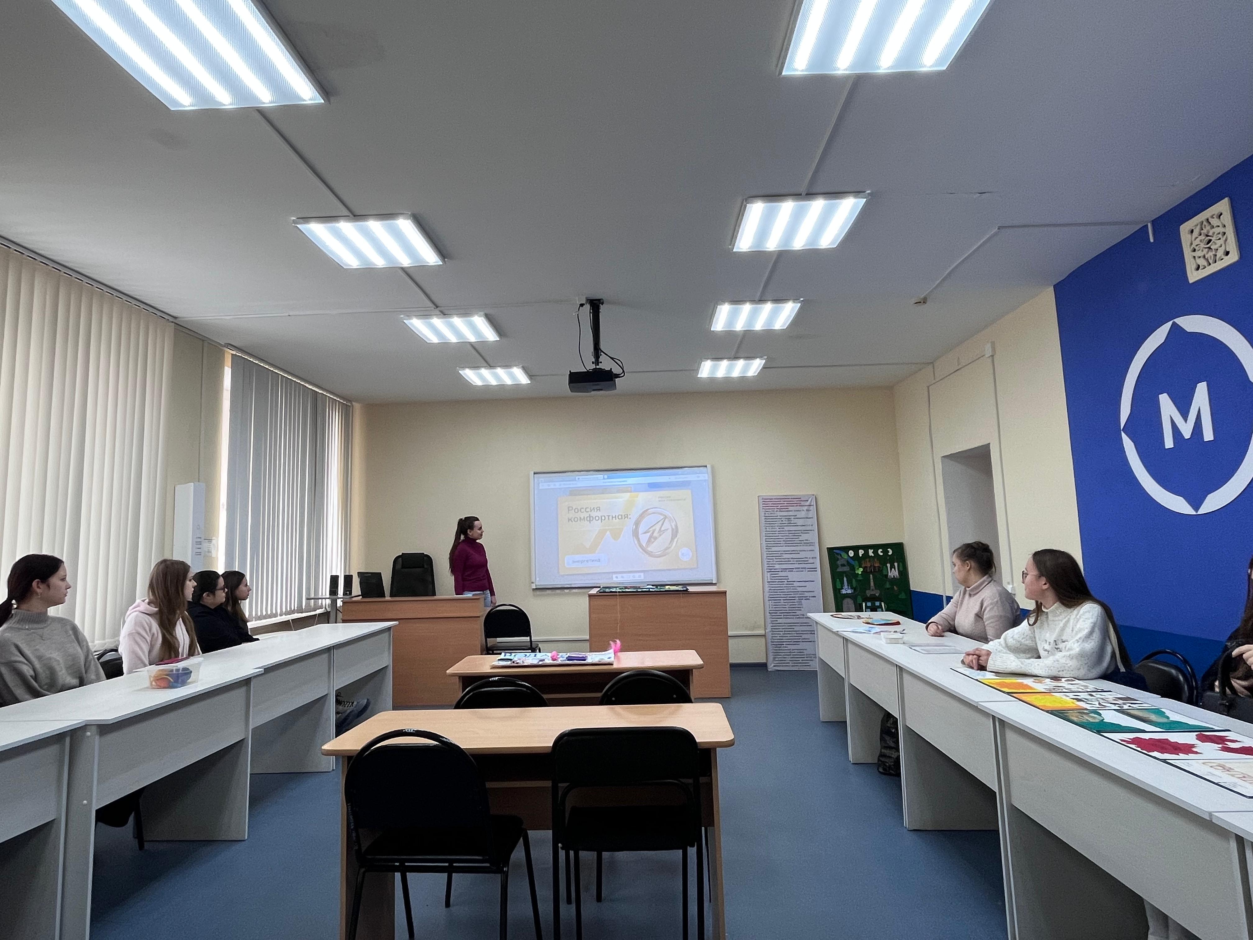 На мероприятии была организована беседа о достижениях России в отраслях «Энергетика», актуальных задачах и перспективах. В ходе занятия студенты познакомились с особенностью работодателей, их географической представленностью, перспективной потребностью в кадрах, также с основными профессиями и содержанием профессиональной деятельности.