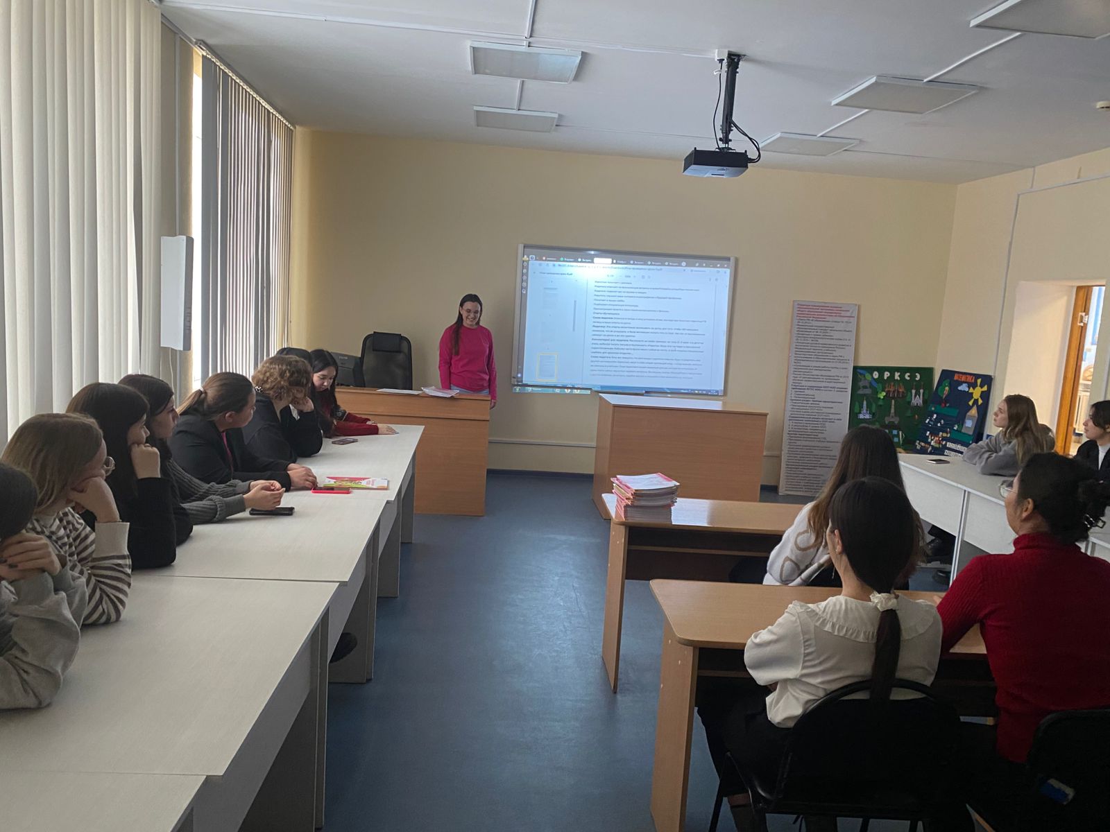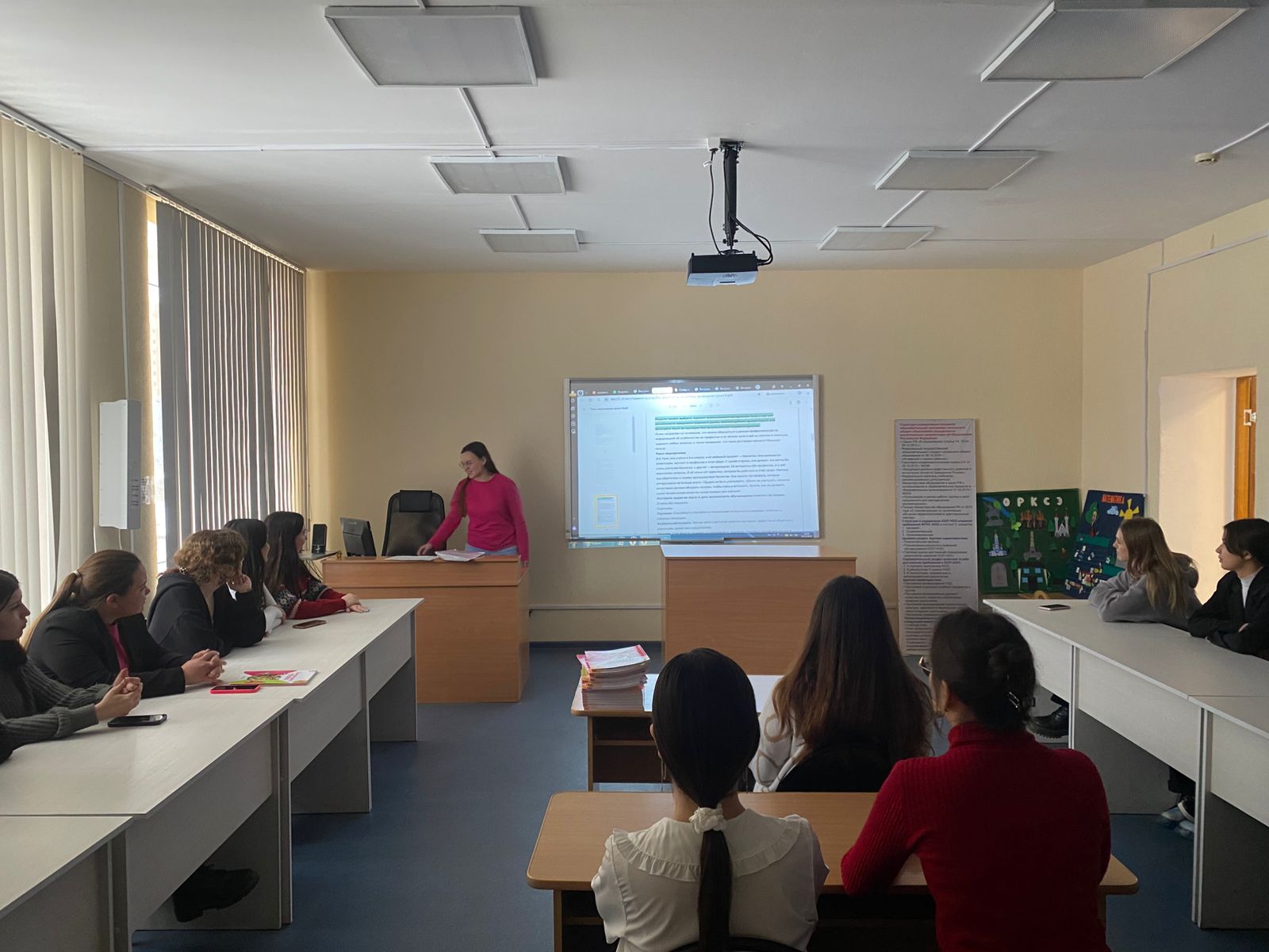 26 декабря 2024 года, в рамках курса «Россия – мои горизонты», для студентов 1 курсов, обучающихся по направлению «Педагогическое образование» профиль «Начальное образование», было проведено профориентационное занятие «Проектное занятие». Провели занятие студентки 3 курса направления «Педагогическое образование» профиль «Начальное образование» Елизавета Егорова, Тахмина Рысбаева (руководитель – Е.А. Савельева, к.п.н., доцент кафедры ТиМНО). На мероприятии была организована беседа, направленная на проектирование собственной деятельности и поиску  ответов на свои вопросы, связанные с профориентацией.