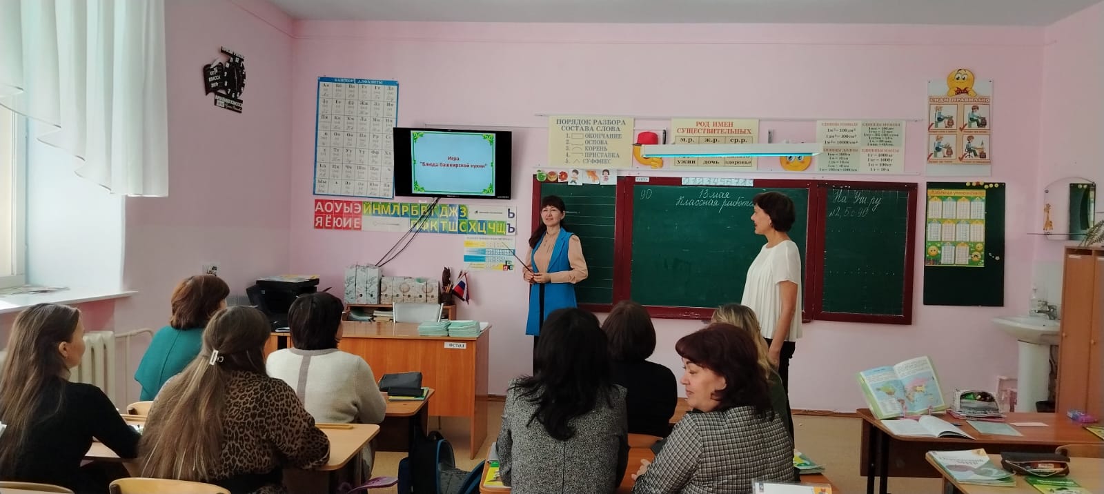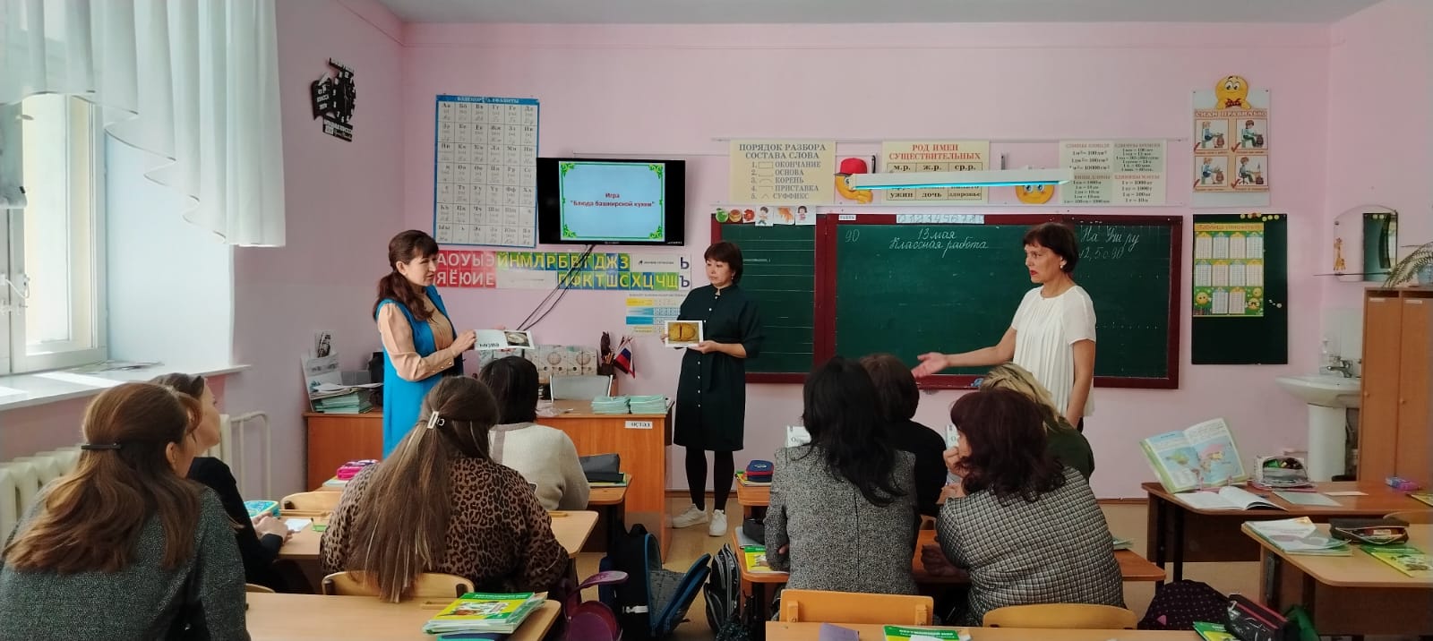 Учителя начальных классов Г.Ф. Габдрафикова, С.Б. Хабибуллина, Н.Х. Габдуллина рассказали об авторской разработке, которая ведется совместно с Е.А. Савельевой, К.И. Аглиуллиной и учителем башкирского языка и литературы уфимской гимназии № 64 имени В.В. Горбатко Г.Р. Самарбаевой. Для учителей была представлена дидактическая игра для младших школьников "Блюда башкирской кухни".