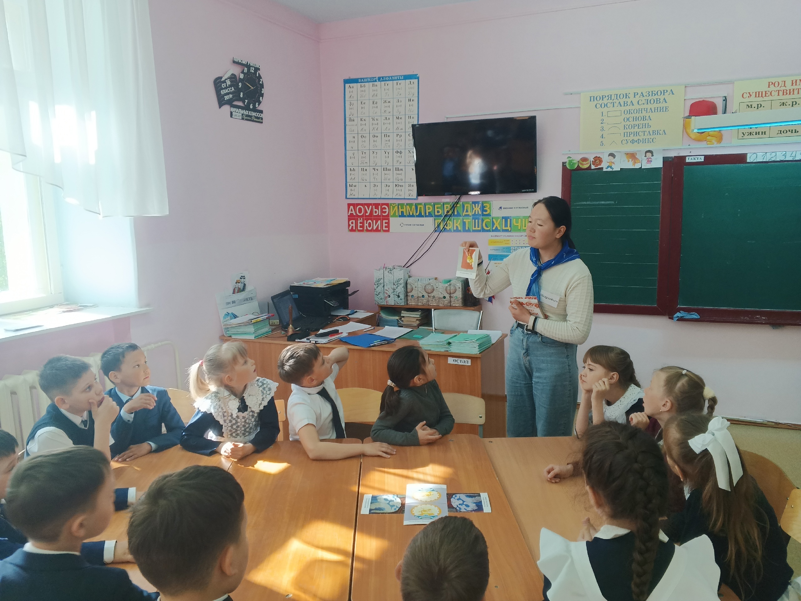 В рамках семинара для обучающихся младшего школьного возраста доц. Е.А. Савельевой и студенткой 3 курса направления "Начальное образование", волонтером отряда "Палитра" Мырзайым Чотбаевой была проведена развивающая игра-лото "Путешествие по городам и сёлам России". Мырзайым Чотбаева провела апробацию дидактической игры "Достопримечательности Кыргызстана", разрабатываемой совместно с Тахминой Рысбаевой, в рамках выпускной квалификационной работы.