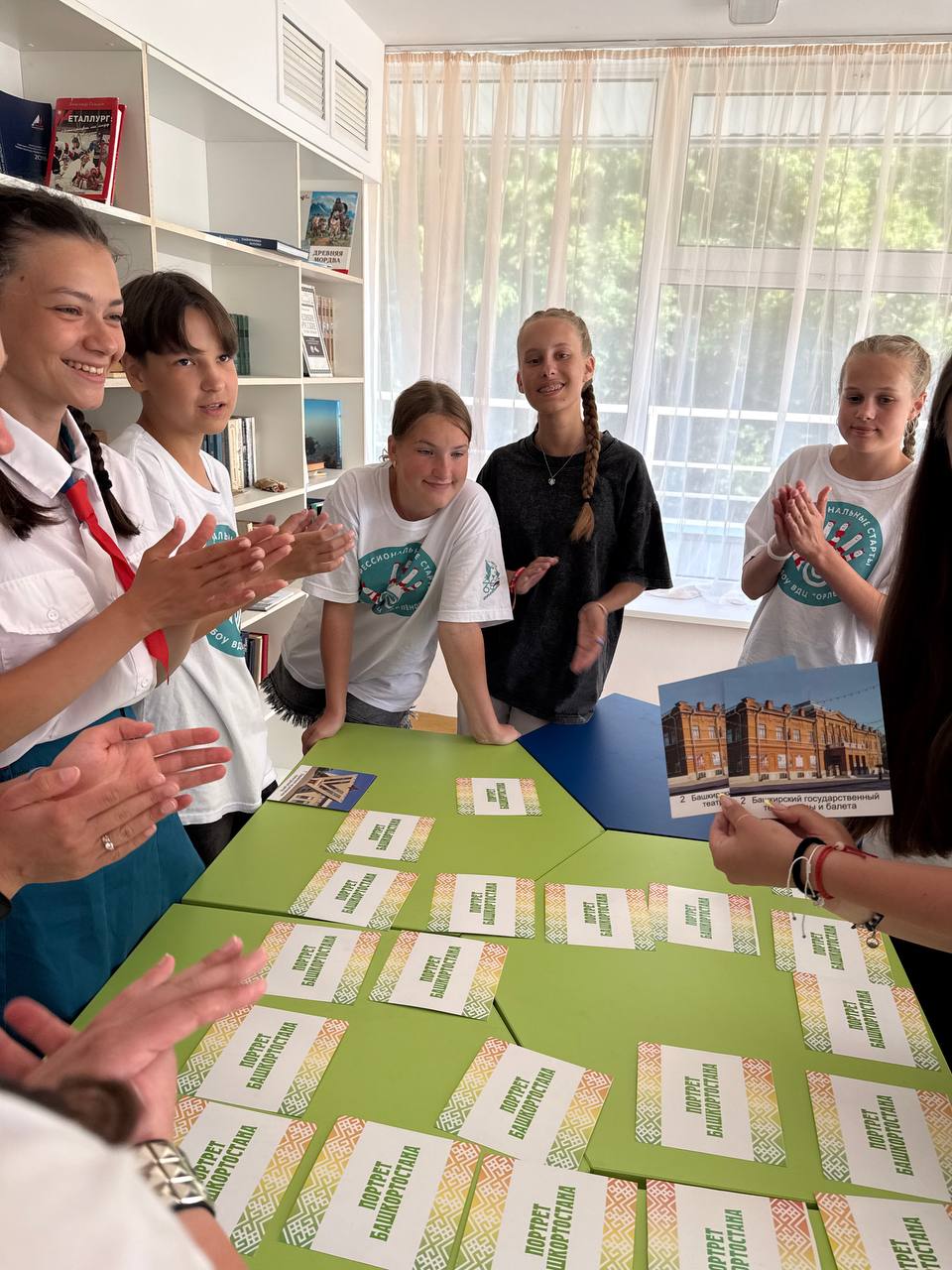 Арина Рясова и Полина Крутько, вожатые детского лагеря «Стремительный», познакомили заведующую библиотекой ВДЦ «Орлёнок» Ольгу Телешеву и ее сотрудников с развивающими играми-лото "Предметы личного пользования солдат и офицеров времен ВОВ 1941-1945 гг.", "Национальные кухни Башкортостана" и передали в дар в библиотеку игры от автора проекта Екатерины Савельевой. Кроме того, Арина Рясова и Полина Крутько организовали и провели игру-лото "Достопримечательности Уфы" для участников смены, познакомив их со столицей Башкортостана Уфой и ее историческими объектами.
