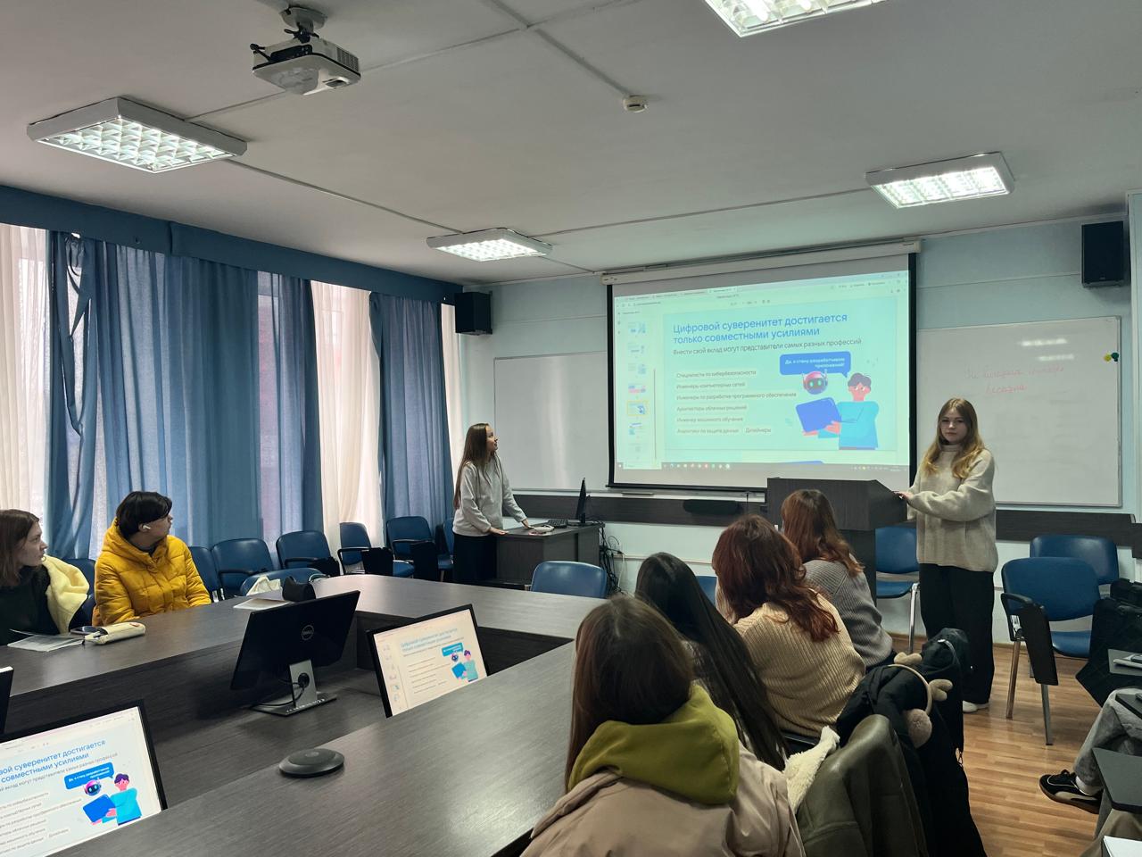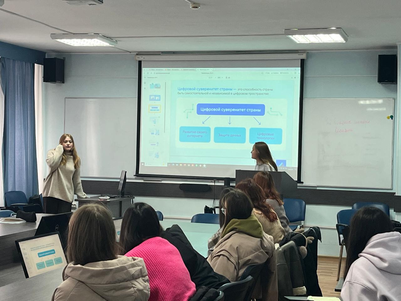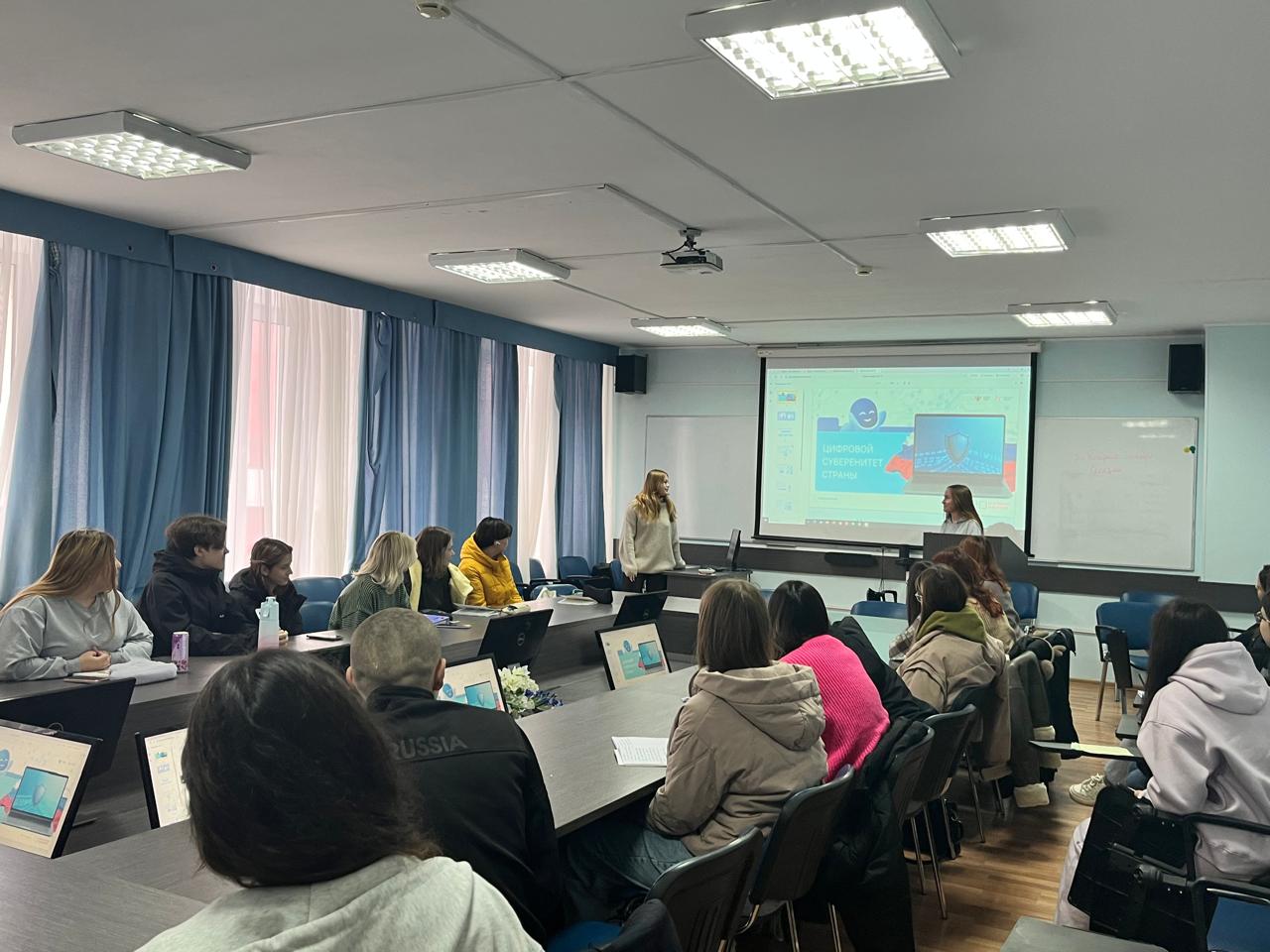 29 сентября 2025 года в рамках просветительских мероприятий «Разговор о важном» для студентов 1 курсов, обучающихся по направлению «Педагогическое образование», профиль «Начальное образование», была организована беседа на тему «Цифровой суверенитет страны». В качестве докладчиков выступили студентки 2 курса и 4 курса направления «Педагогическое образование», профиль «Начальное образование» Эвелина Иванова, Азалия Зайнуллина, Елизавета Егорова и доцент кафедры ТиМНО Е.А. Савельева.