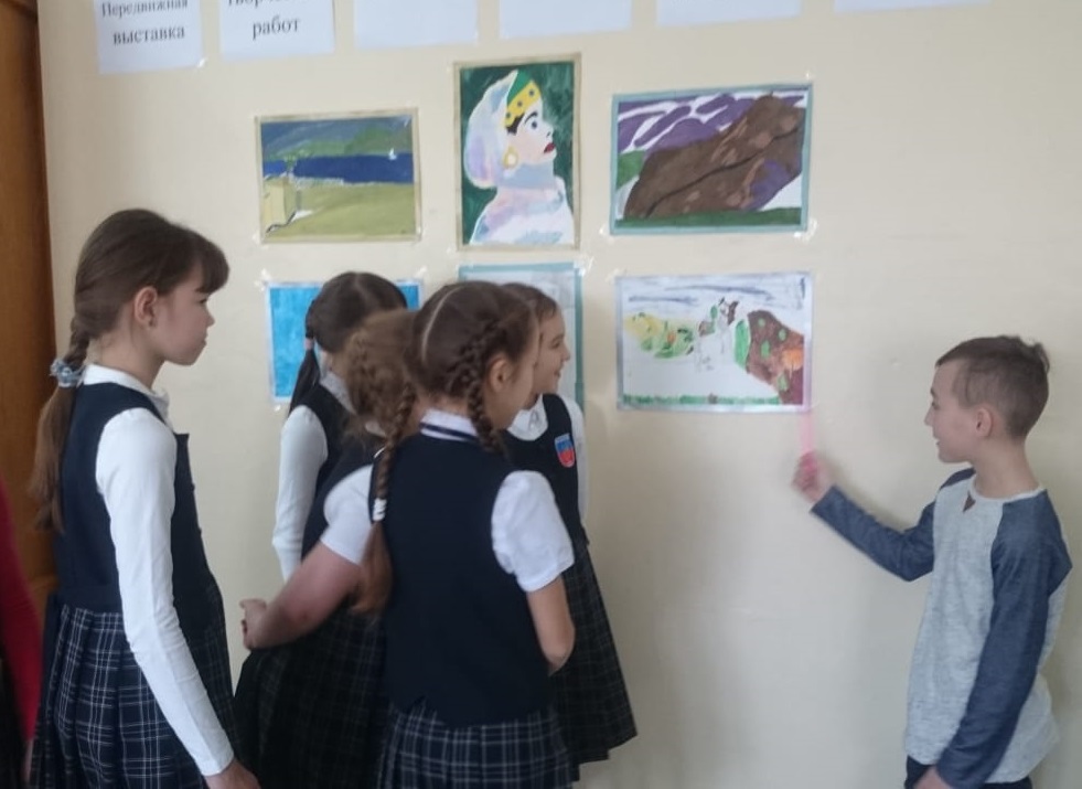 исследовательской конференции школьников «Интеллект будущего» (организатор – МКУ Управление образования муниципального района Белебеевский район РБ) и сопровождался передвижной выставкой творческих работ юных художников  Башкирской гимназии-интернат г. Белебея, выполненных в виде вольных копий с живописных произведений М.В. Нестерова.  Обучающиеся уфимской гимназии № 64, также как и докладчик из Башкирской гимназии-интернат г. Белебея, были подготовлены и хорошо знали творчество М.В. Нестерова, поскольку игры-арт-лото «Истоки коллекции БГХМ им. М.В. Нестерова» и творческие задания на закрепление знаний  научным руководителем Е.А. Савельевой и учителями начальных классов ведутся в течение продолжительного времени.