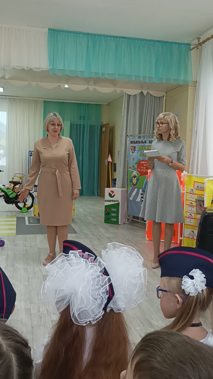 Почетное право перерезать праздничную ленточку было предоставлено Елене Анатольевне и Юлии Павловне. Гости пожелали ребятам внимательно изучать и соблюдать Правила Дорожного Движения, быть крепкими и здоровыми.