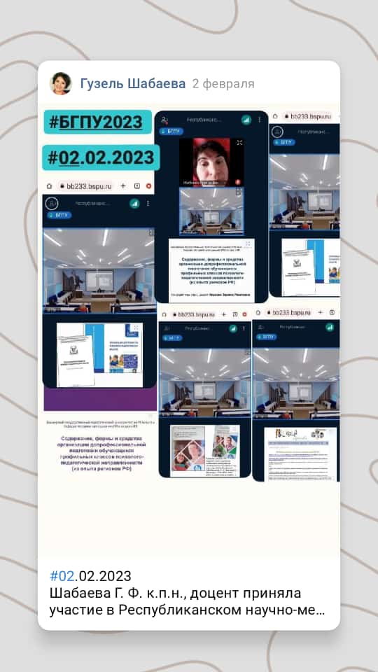 02.02.2023г. Шабаева Г. Ф. к.п.н., доцент приняла участие в Республиканском научно-методическом семинаре «Перспективные формы организации деятельности профильных классов», посвященного 200-летию со дня рождения К.Д. Ушинского и Году педагога и наставника. Дата и время проведения: 02 февраля 2023 года с 14.00 ч. до 16.00.
