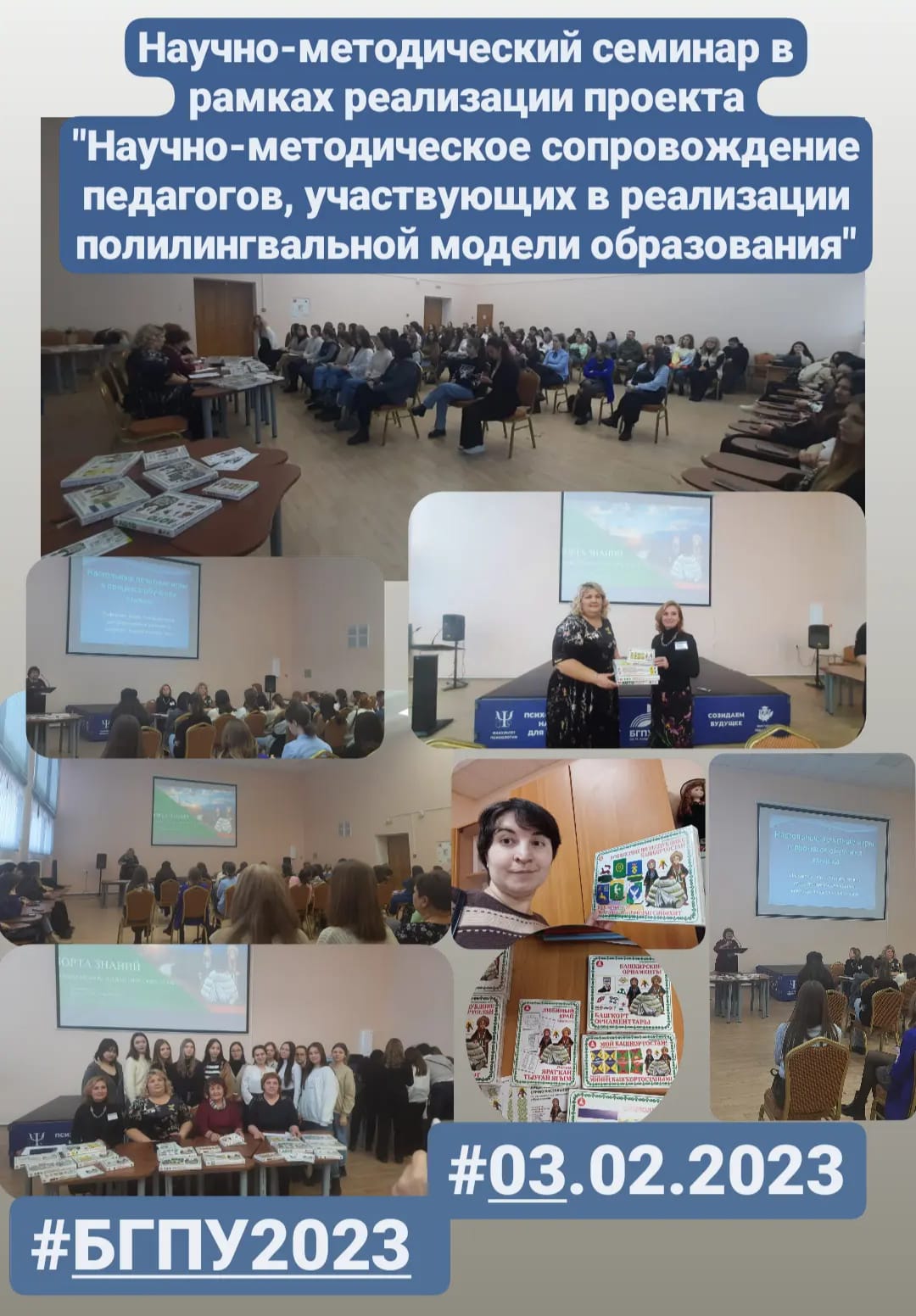 03 февраля 2023 г. в институте педагогики  кафедрой дошкольной педагогики и психологии был организован и проведен  научно-методический семинар со студентами, магистрантами, педагогами инновационных площадок  в  условиях реализации проекта БГПУ имени М Акмуллы "Научно-методическое сопровождение педагогов, участвующих в реализации полилингвальной модели образования"