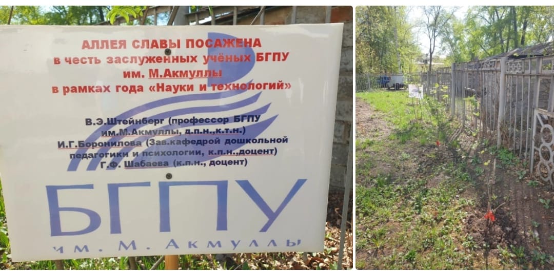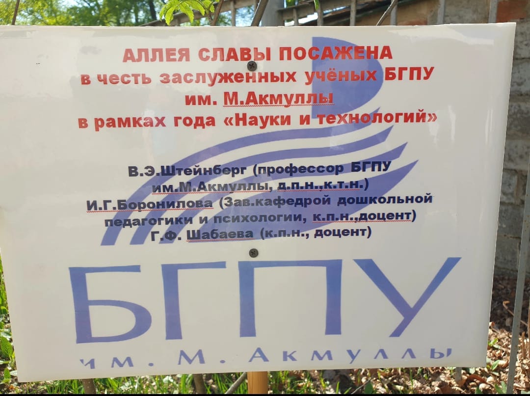 В рамках становления и развития проекта была посажена "АЛЛЕЯ  СЛАВЫ В ЧЕСТЬ ЗАСЛУЖЕННЫХ УЧЁНЫХ БГПУ им. М. Акмуллы" в год науки и технологий.