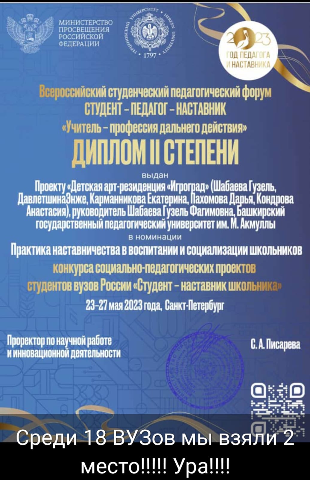 Студенты  и ППС кафедры ДПиП Института педагогики Акмуллинского университета победили во Всероссийском  конкурсе  проектов   в рамках конкурсов   Всероссийского студенческого педагогического  форума «Учитель – профессия дальнего действия» среди 18 ВУЗов РФ - команда БГПУ имени Мифтахетдина Акмуллы заняла 2 место!