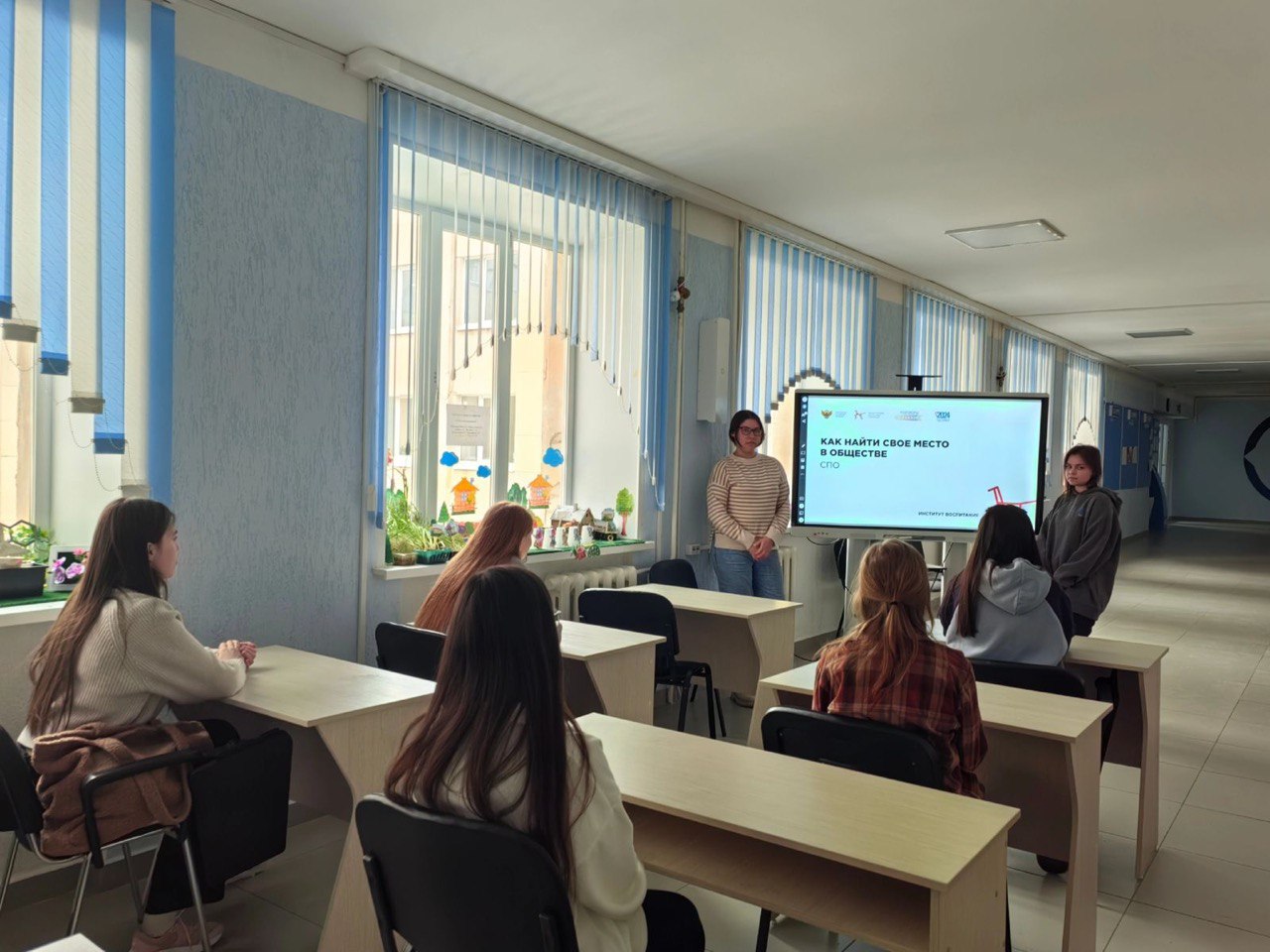 04 марта 2024 года в рамках просветительских мероприятий Всероссийского проекта «Разговоры о важном!» для студентов, обучающихся по направлению «Педагогическое образование», профиль подготовки «Дошкольное образование», проведен тематический урок: «Как найти свое место в обществе». Во время урока обсудили различные темы: профессиональное становление, качества педагога, интересы человека и способы их реализации в обществе, пытались определить содержание понятия «хороший человек» и «мое место в обществе». В ходе беседы пришли к выводу, что нахождение своего места в обществе – это процесс, требующий самоисследования, самопринятия и развития своих талантов и способностей. Найти свое место в обществе – это значит соответствовать его ценностям и традициям, любить то, чем занимаешься и приносить пользу людям и своей стране, чтобы в будущем занять свое место в обществе и быть счастливым.