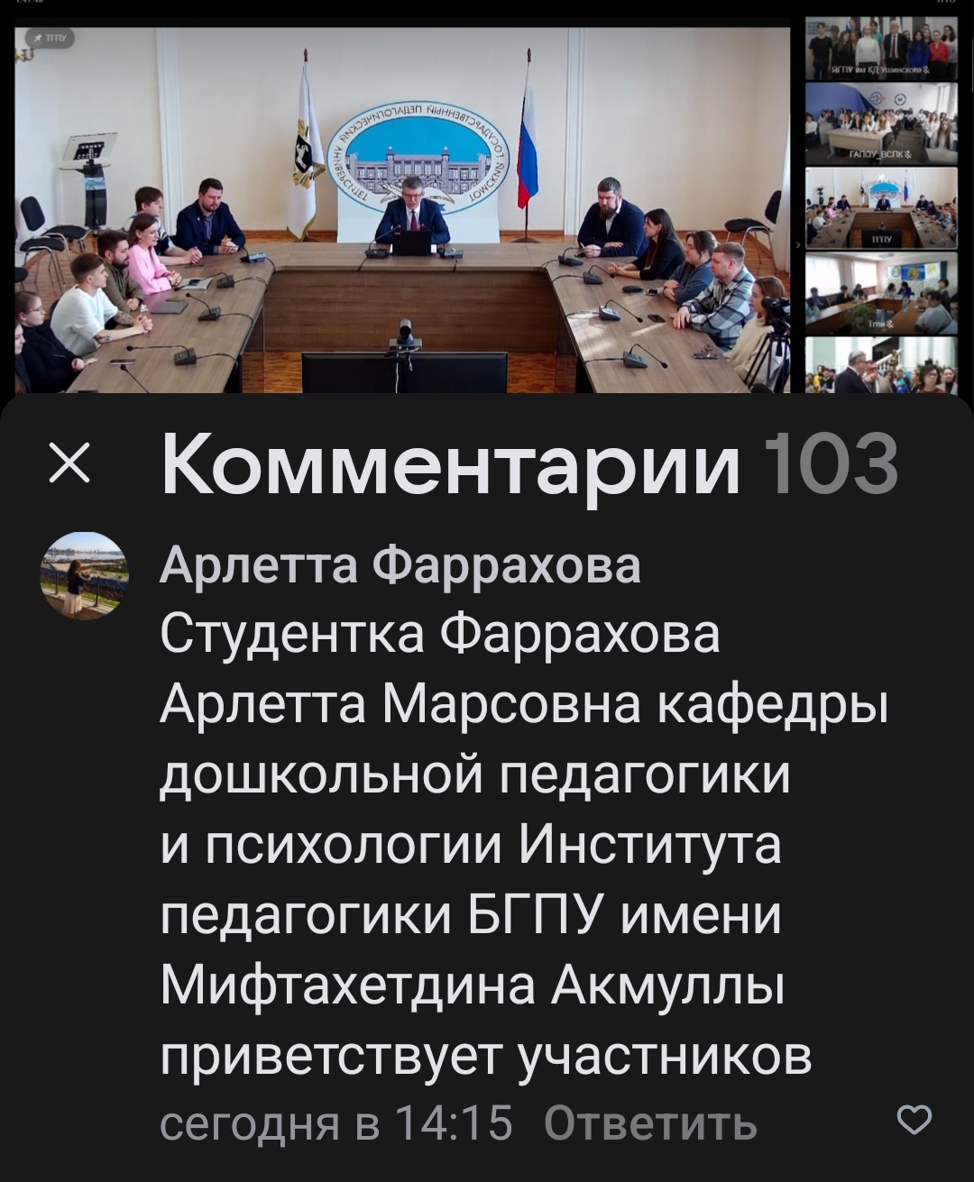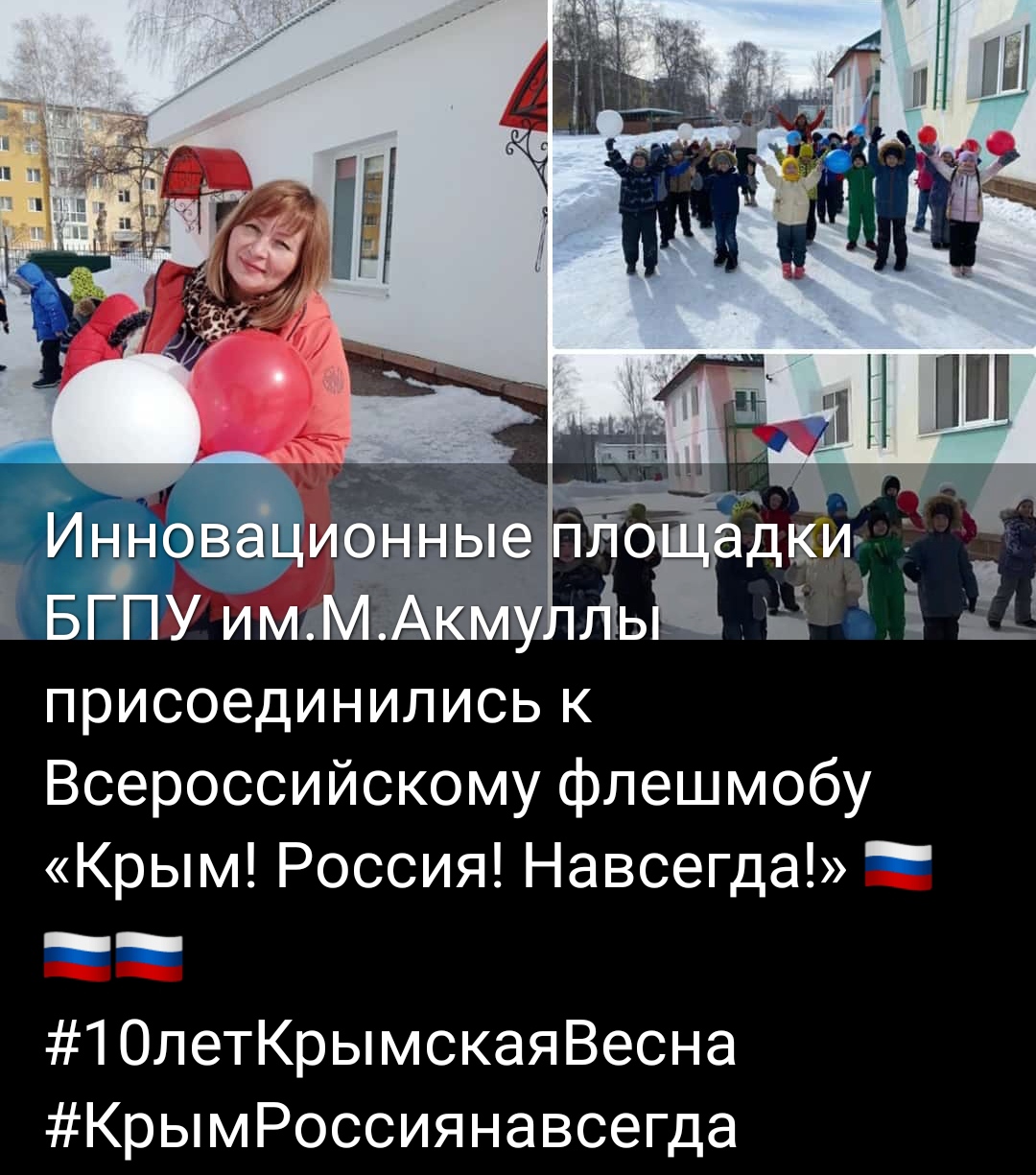 18.03.2024г. преподаватели и студенты, магистранты кафедры ДПиП Института пелагогики БГПУ имени Мифтахетдина Акмуллы приняли активное участие в работе Телемоста Ассоциации педагогического образования на базе МПГУ г.Москва "10 - летие воссоединения Крыма и Севастополя с Российской Федерацией «Крымская весна» онлайн. Присоединяемся к Всероссийскому флешмобу «Крым! Россия! Навсегда!» 10-летие воссоединения Крыма и Севастополя с Российской Федерацией отпраздновали в МПГУ в формате телемоста.