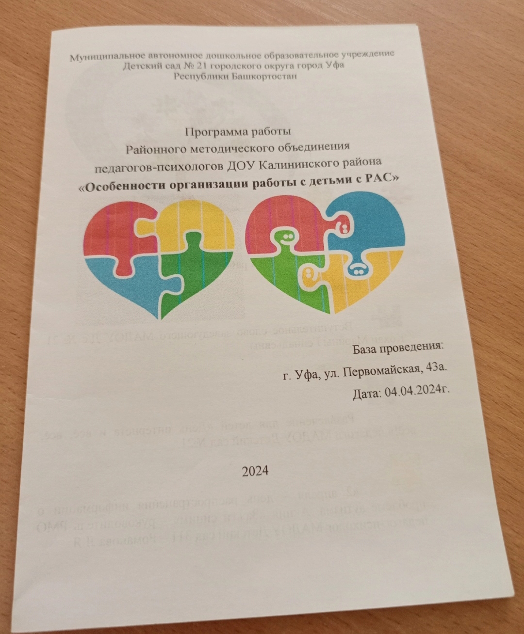 04  апреля 2024 г. успешно прошло районное методическое объединение педагогов-психологов  ДОО Калининского района по теме: "Особенности организации работы с детьми РАС" в рамках реализации мероприятий, посвященных году Семьи РФ Год заботы о людях с ОВЗ в МАДОУ ДС 21 ГО  г. Уфы  Республика Башкортостан .