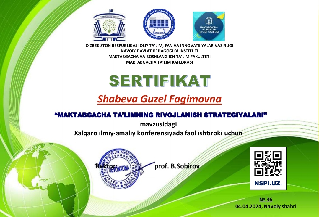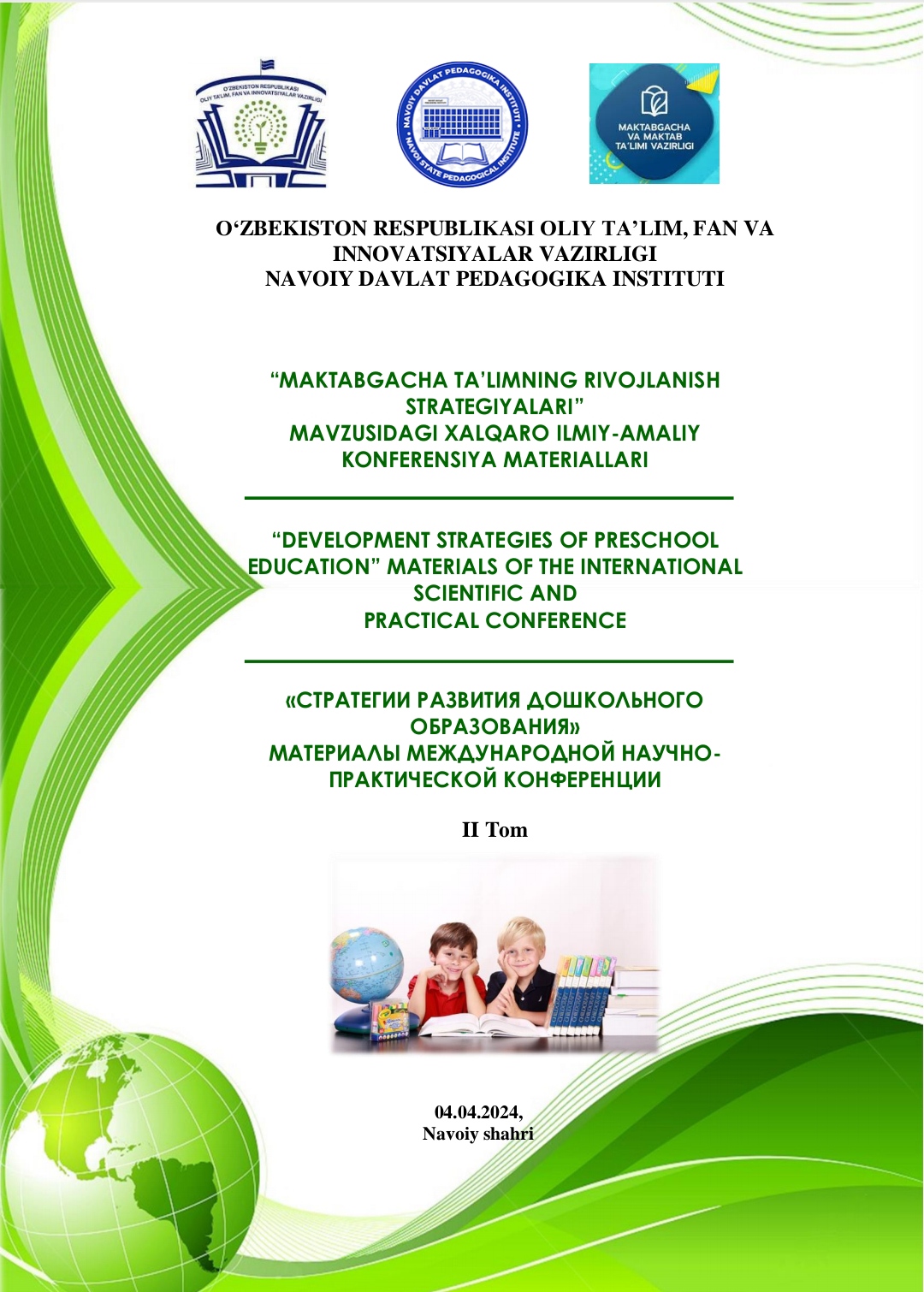 В соответствии с приказом Министерства высшего образования, науки и инноваций Республики Узбекистан от 18 января 2024 года №16, 4 апреля 2024 года в Навоийском государственном педагогическом институте  успешно состоялась Международная научно-практическая конференция на тему «Стратегии развития дошкольного образования».