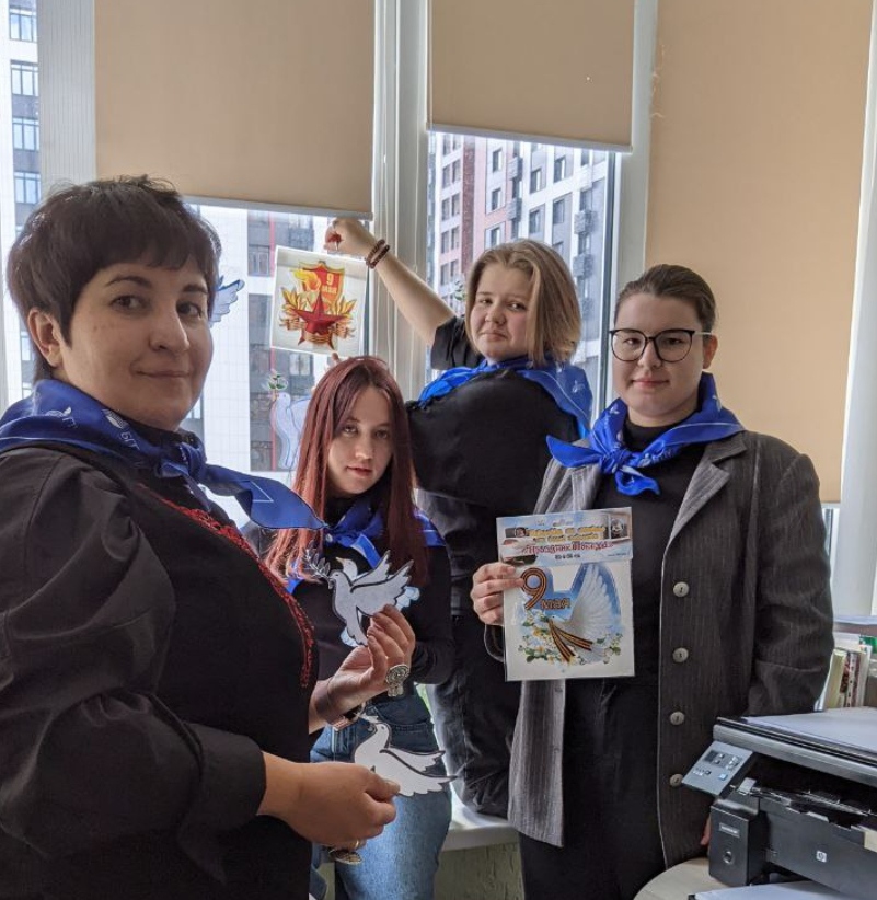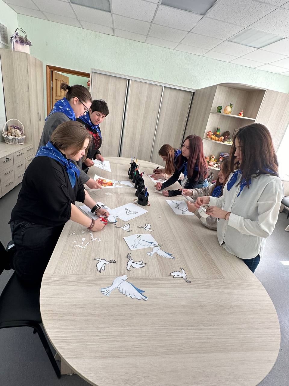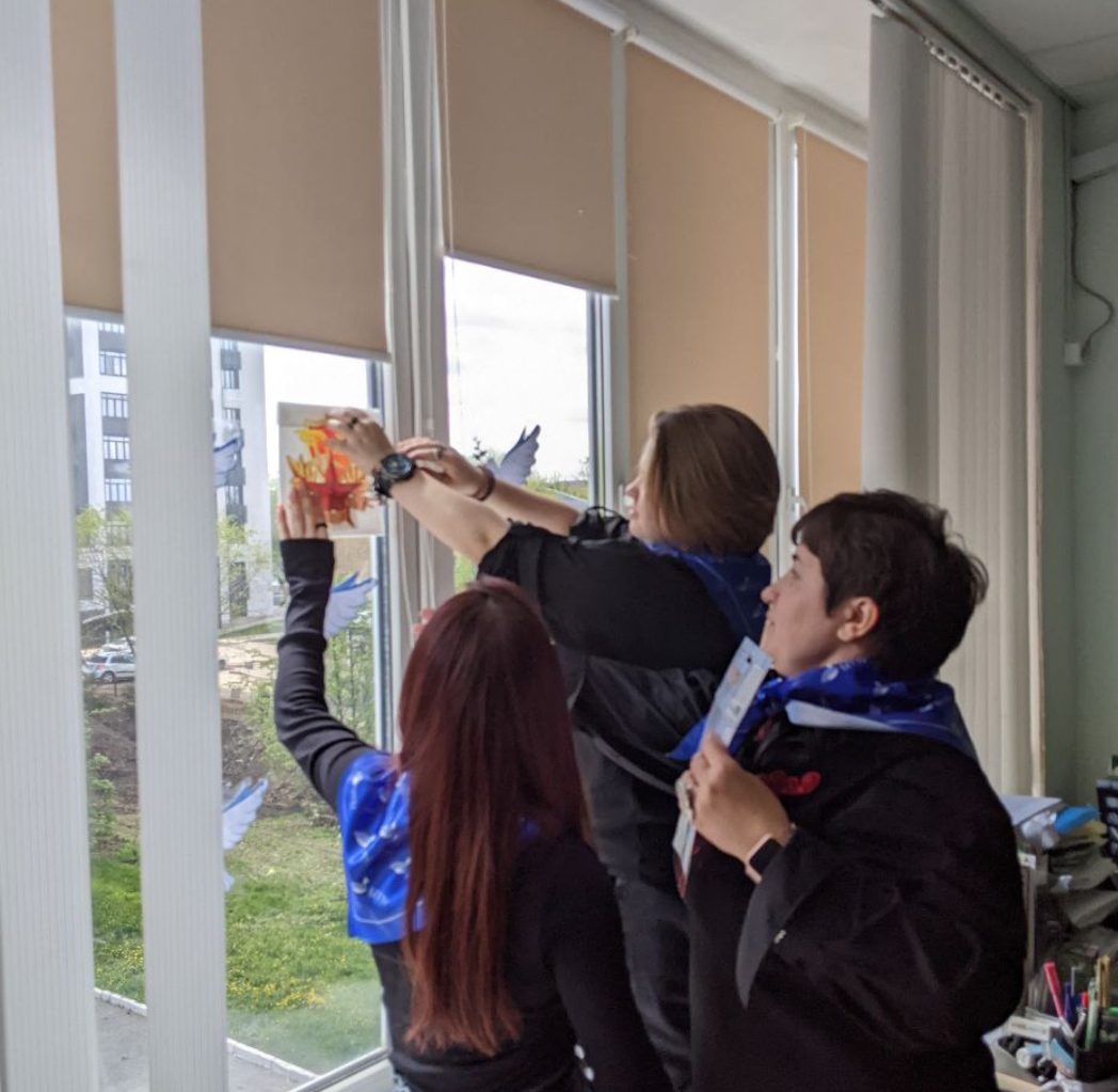 В ходе мероприятия участники вырезали голубей, рисовали плакаты и украшали окна, беседовали о  Главном.  Активисты старались показать всё своё неравнодушие к истории  нашей страны.