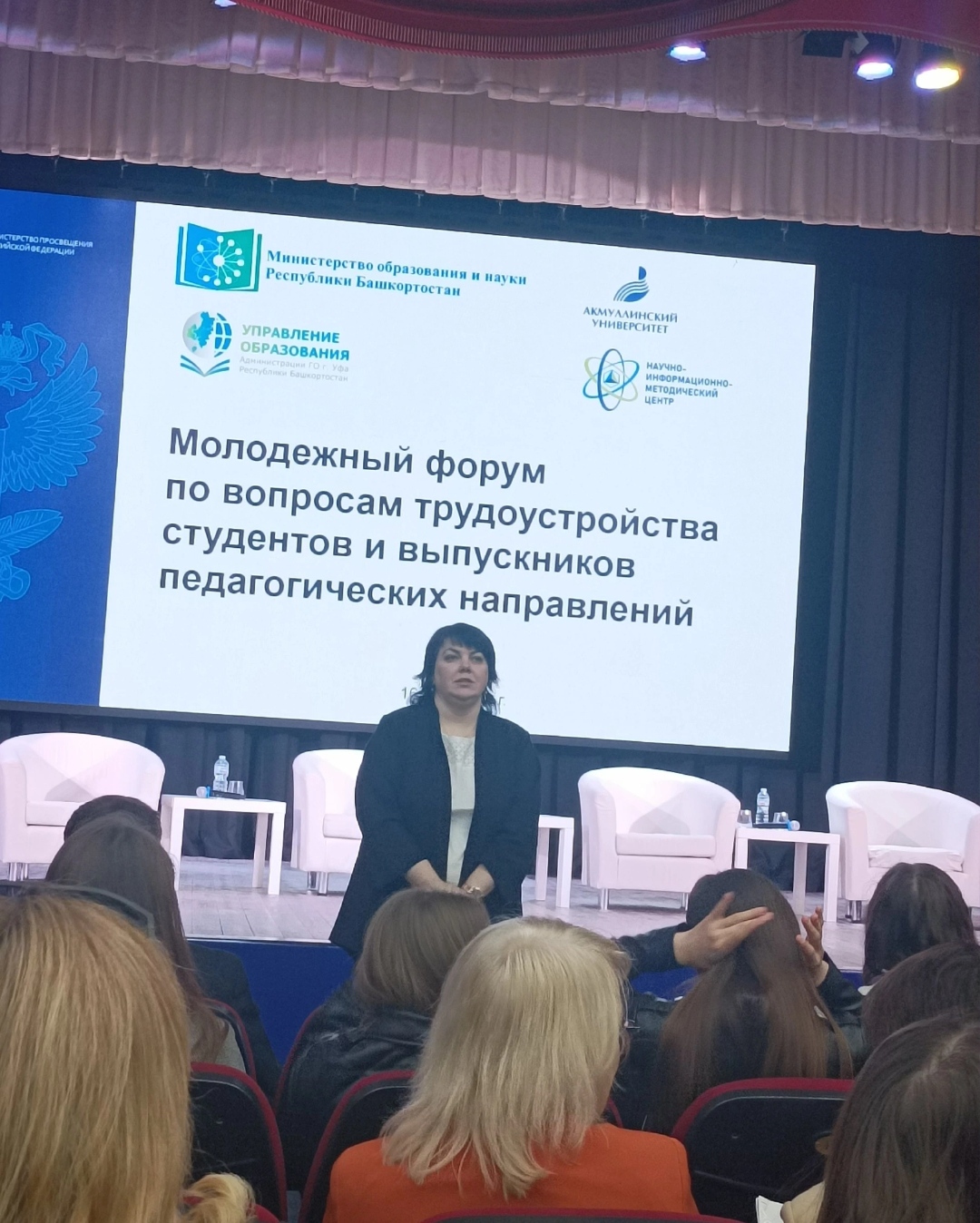 16.05.2024г. Студенты кафедры ДПиП Института педагогики Акмуллинского университета и преподавательский состав кафедры: директор Института педагогики, доцент  Боронилова И.Г., и.о. заведующего кафедрой ДПиП Института педагогики, доцент  Шабаева Г.Ф.,  доцент Акчулпанова А.А. приняли участие в Молодежном форуме по вопросам трудоустройства студентов и выпускников педагогических направлений.
