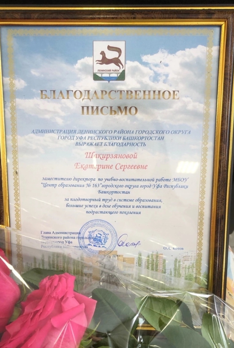 Выпускнице кафедры ДПиП Шакирзяновой Е.С.  вручили благодарственное письмо за многолетний труд в системе образования и высокие достижения !