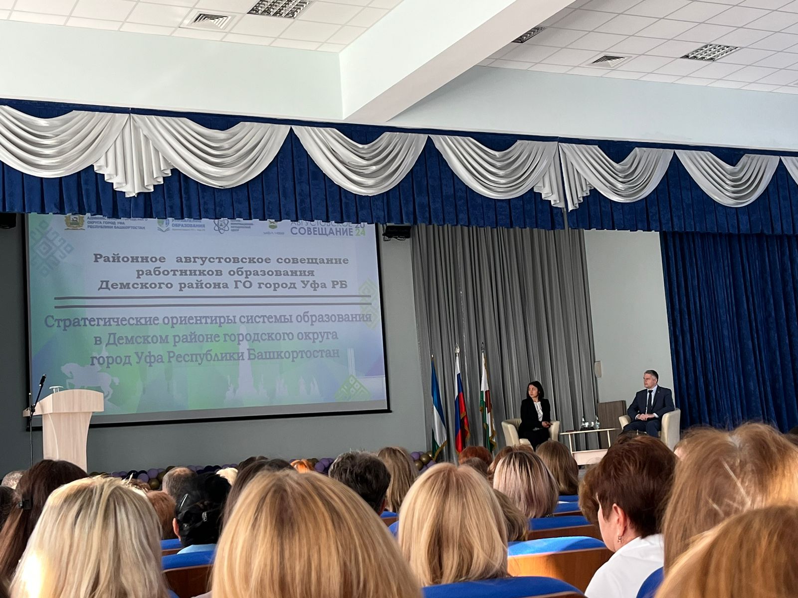 27.08.2024г. Бакирова Ольга Геннадьевна, студентка кафедры ДПиП Института педагогики группы ЗПДОС 42-21 Башкирского государственного педагогического университета им. М. Акмуллы, педагог МАДОУ Детский сад №271 город Уфа, приняла участие в работе районного августовского совещания работников образования Демского района ГО города Уфа Республики Башкортостан. Тема совещания: "Стратегические ориентиры системы образования в Демском районе городского округа город Уфа Республика Башкортостан".