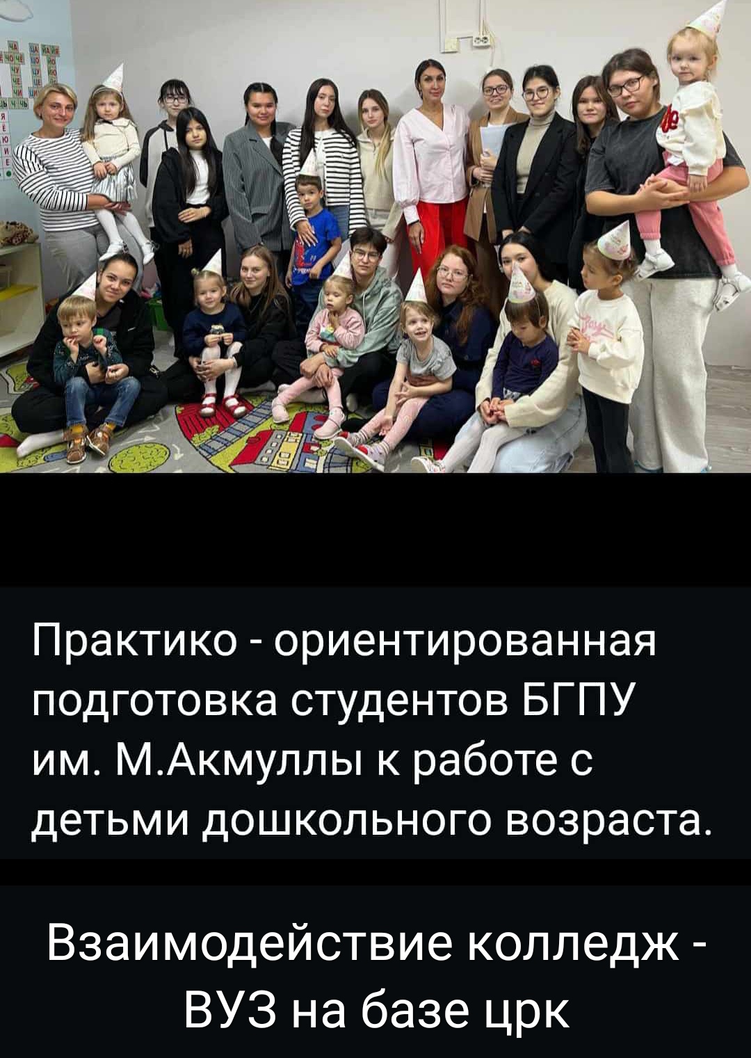 В условиях практико-ориентированного обучения по междисциплинарному курсу «Теория и методика развития речи у детей» в колледже и "Теория и технологии развития речи детей дошкольного возраста с практикумом"в ВУЗе под руководством  Шабаевой Г.Ф., к.п.н., доцент, зав.каф.ДПиП и Кинцель В.Н., преподаватель кафедры ДПиП, главный специалист СОТ, магистр образования со студентами 3 курса ПО - ДО провели в системе колледж- ВУЗ психолого-педагогическое