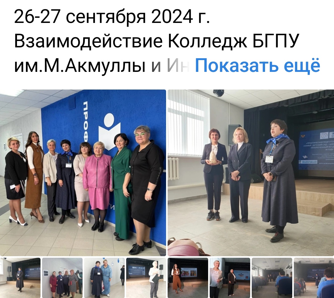 26-27 сентября 2024 г. Взаимодействие Колледж БГПУ им.М.Акмуллы и Институт педагогики Акмуллинского университета: круглый стол, научно-методический семинар-сессия, мастер-класс по steam по инженерным профессиям.  Круглый стол "ПРАКТИЧЕСКАЯ ПОДГОТОВКА БУДУЩИХ ПЕДАГОГОВ В СИСТЕМЕ  «СЕМЬЯ - ДЕТСКИЙ САД – ШКОЛА – КОЛЛЕДЖ - ВУЗ- ПРОИЗВОДСТВО», ПРИУРОЧЕННЫЙ КО ДНЮ ДОШКОЛЬНОГО РАБОТНИКА И ГОДУ СЕМЬИ В РОССИИ