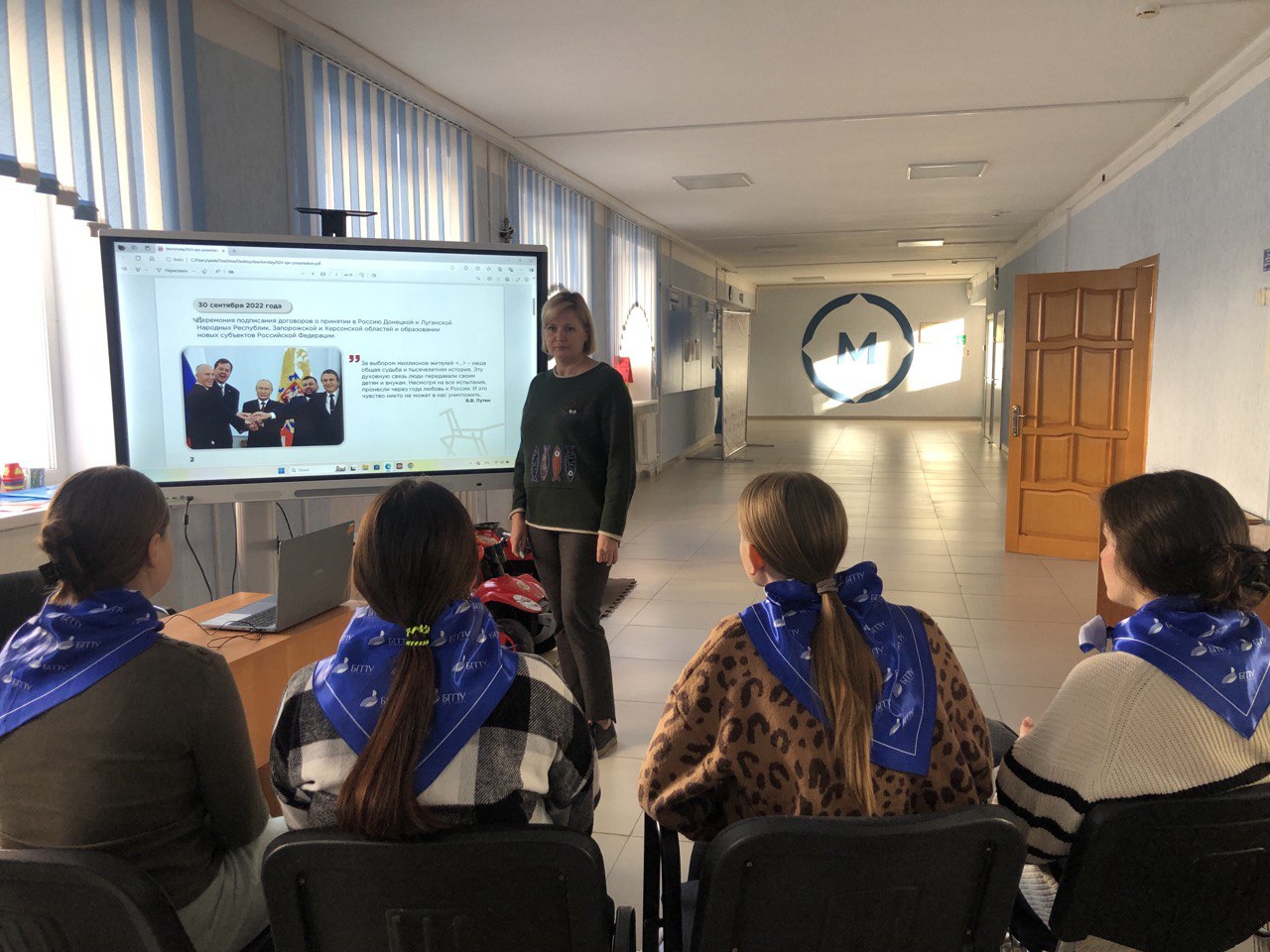 30 сентября 2024 года в рамках просветительских мероприятий Всероссийского проекта «Разговоры о важном!» для студентов, обучающихся по направлению «Педагогическое образование», профиль подготовки «Дошкольное образование» проведен тематический урок: «День учителя». Это общий праздник, праздник всех поколений, благодарных за полученные знания и умения, за воспитание. Сегодня мы говорили о важности труда педагога, почетной профессии. Отметили, что педагоги дают не только знания, но и проводят воспитательную работу, которая влияет на становление будущей личности. У каждого из нас есть пример педагога, образ которого бережно храним всю жизнь. Рассказывая уже своим ученикам, студентам, что труд педагога заслуживает глубокого признания и благодарности. Ведь именно он открывает много нового и интересного, учит нужным и полезным навыкам, помогает ориентироваться в нынешнем мире.