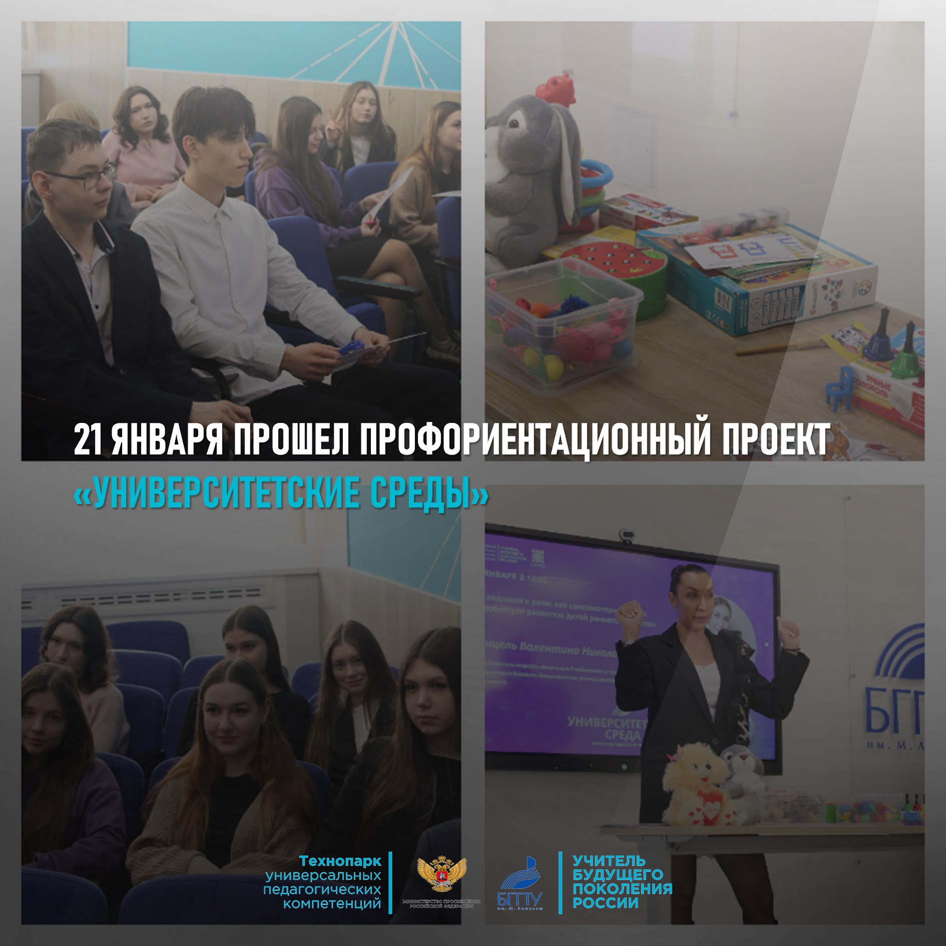 21 января 2026г. Ученики 10 класса МАОУ "Школа 113 им. И.И. Рыбалко" в рамках проекта «Университетские среды» Технопарка приняли участие в специальном мастер-классе, продолжающий открывать мир серьёзных профессий. Тема встречи: «От ладошки к речи: как сенсомоторные игры способствуют развитию детей раннего возраста».