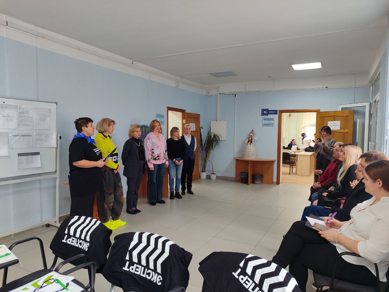 Первый модуль «Просветительское мероприятие с родителями». В этом задании юниоры проявили себя не только как будущие педагоги, но и как психологи и ораторы. Им предстояло донести до «осознанных родителей» (роль которых исполняли волонтеры-добровольцы 1 и 3 курсов ) важные аспекты развития детей. Школьники предлагали оригинальные форматы взаимодействия, проводили мини-тренинги и мастер-классы, убеждая взрослых в важности игры совместного чтения произведений А.Барто.