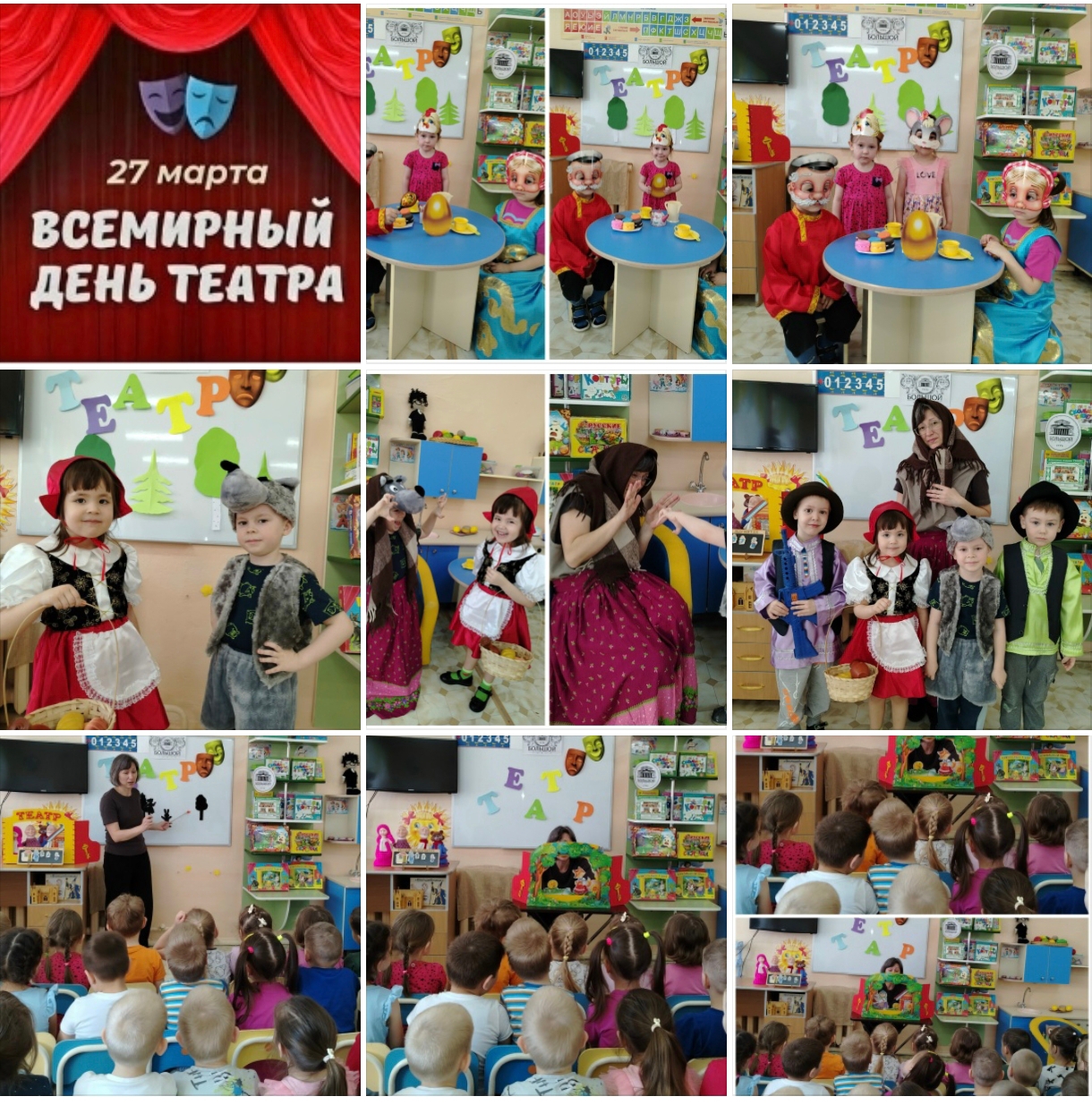 Дети в группе "Пион" провели незабываемый день, посвящённый Всемирному дню театра в России. Театр в детском саду — это интерактивная игровая деятельность, развивающая речь, эмоции, воображение и социальные навыки у дошкольников. Через кукольные спектакли, драматизацию сказок и подвижные игры дети учатся выражать чувства, преодолевать застенчивость и взаимодействовать в коллективе.