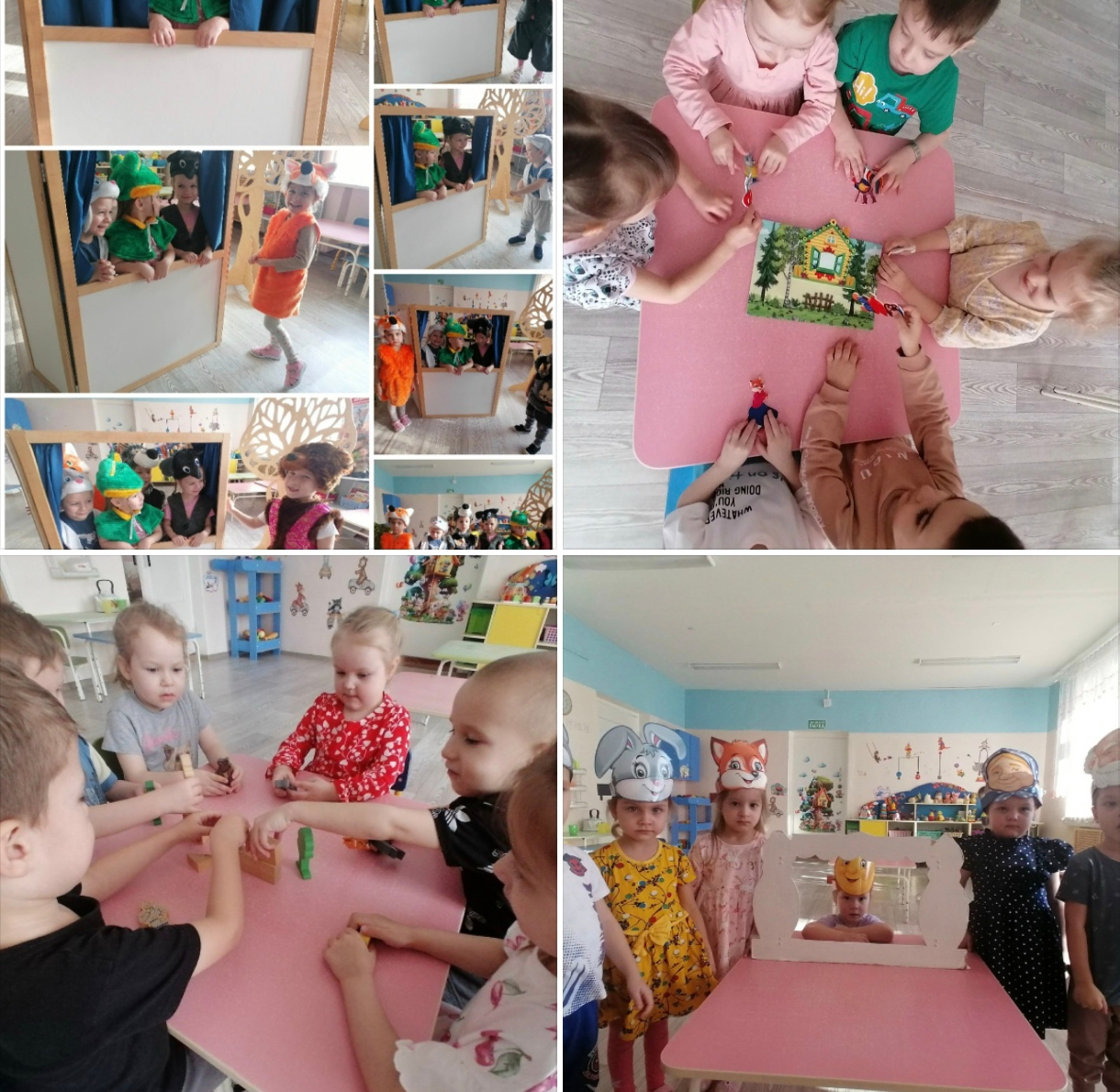 Ребята приняли участие в театрализованной игре по сказке «Теремок». Нарядившись в костюмы героев, дети с азартом исполняли роли персонажей. Представление получилось очень весёлым и интересным: оно подарило всем отличное настроение и способствовало развитию интереса к театрализованной деятельности.