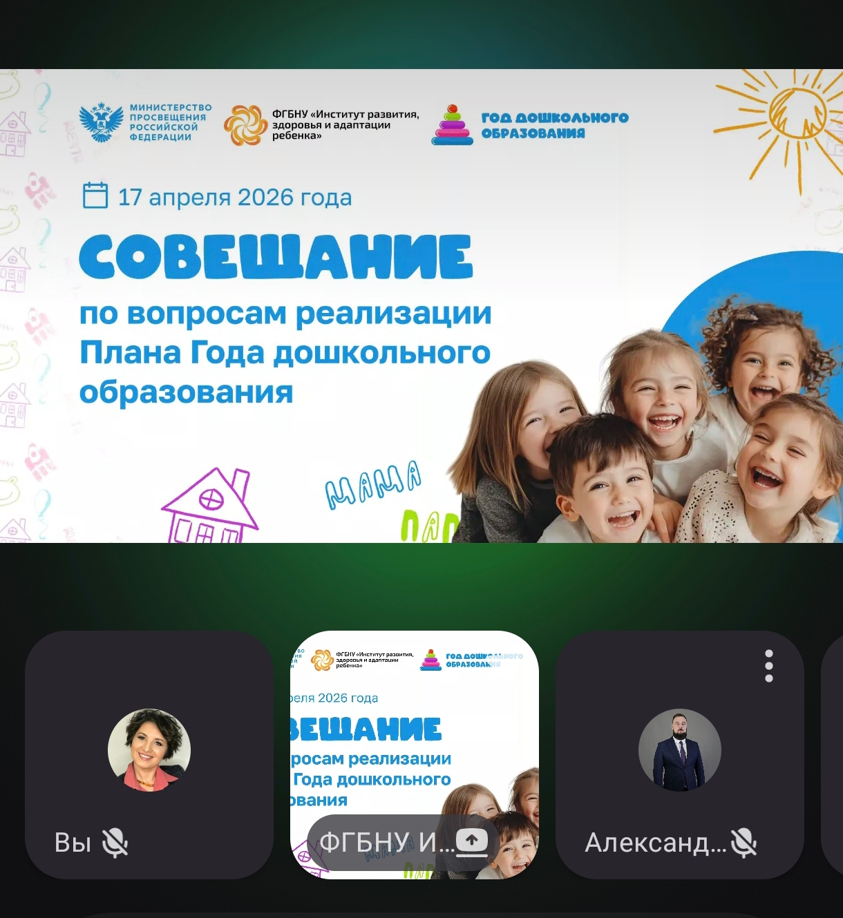17 апреля 2026 г., под руководством Елены Николаевны Приступы, директора Института развития ребенка, состоялось рабочее совещание с представителями подведомственных Минпросвещения России организаций, ответственных за реализацию Плана мероприятий Года дошкольного образования.
