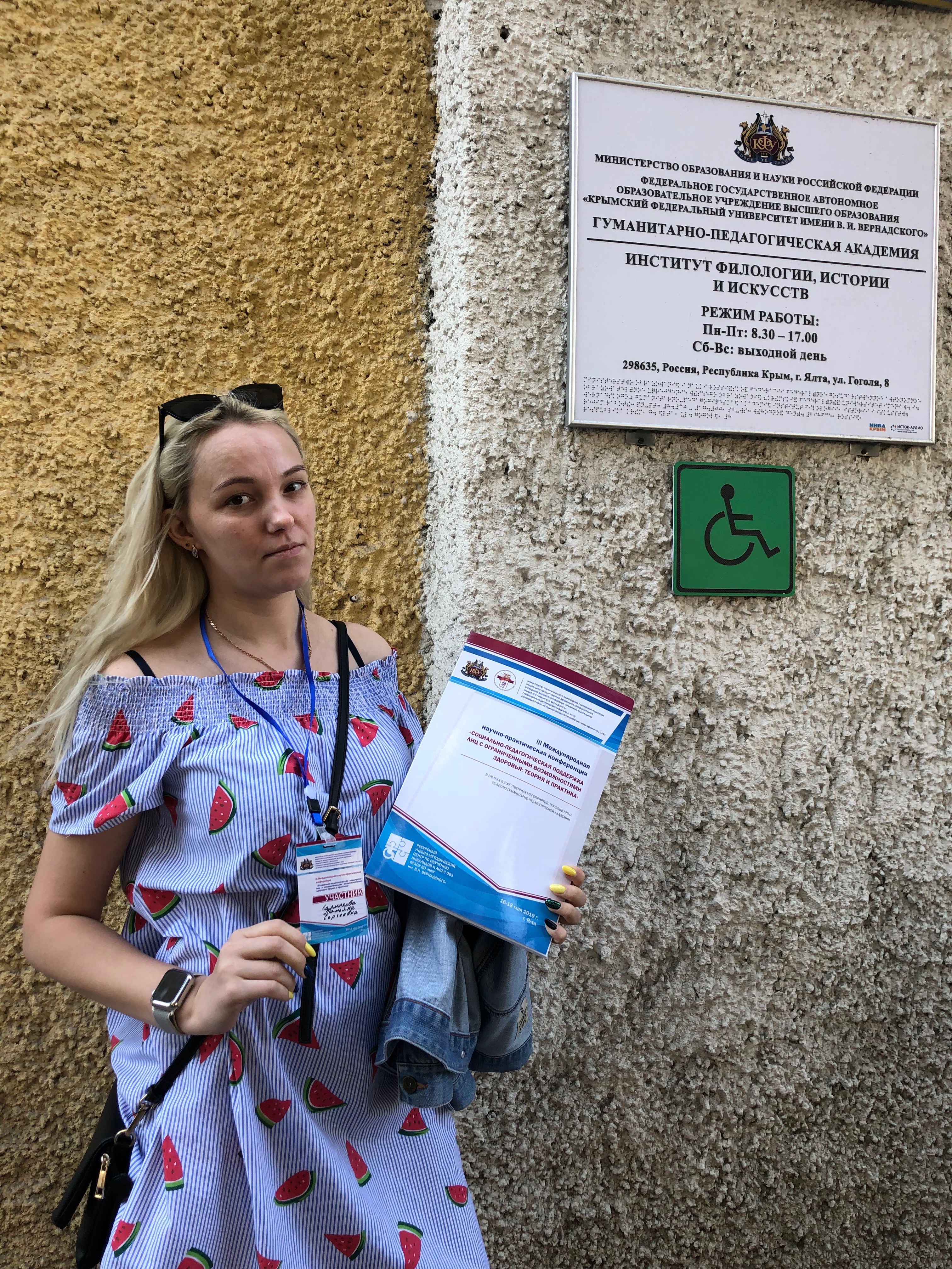 Преподаватель кафедры ДПиП Л.Ю. Валеева и преподаватель Колледж БГПУ им.М.Акмуллы Т.С. Калмыкова приняли очное участие в г. Ялта Респ. Крым 16-18 мая 2019 года в работе III Международной научно-практической конференции «Социально-педагогическая поддержка лиц с ограниченными возможностями здоровья: теория и практика». В мероприятии приняли участие представители более 80 университетов, более 30 дошкольных образовательных организаций и 20 специализированных учреждений.