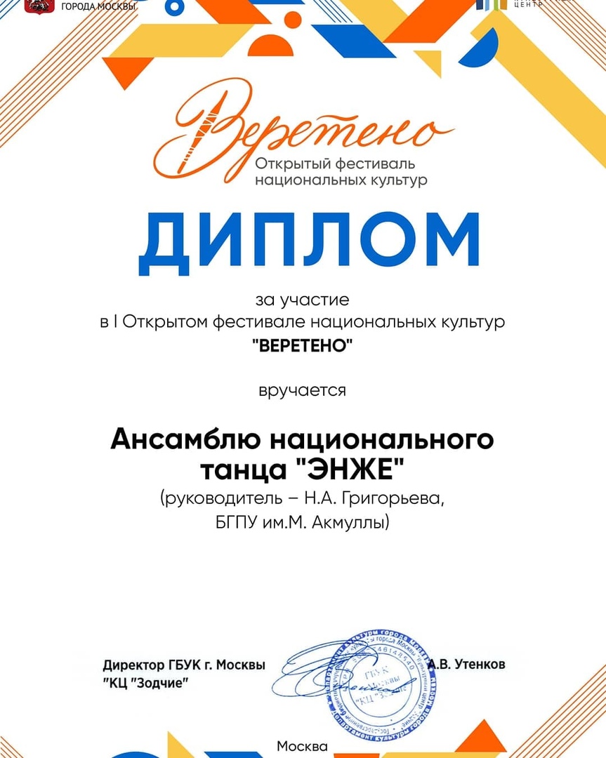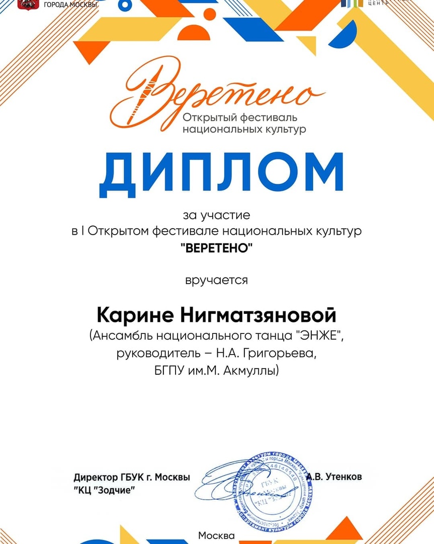 Первый онлайн-фестиваль на базе Культурного Центра  "Зодчие". Новый формат для сохранения традиций. Ансамбль Национального Танца "ЭНЖЕ"  в рамках фестиваля Веретено в Москве. Смотрите "Татарочка" исполняет Карина Нигматзянова с 25.50 минуты и младшая группа Бусинка с 1ч 40 мин.
