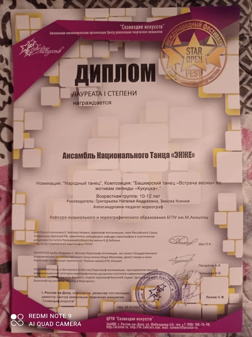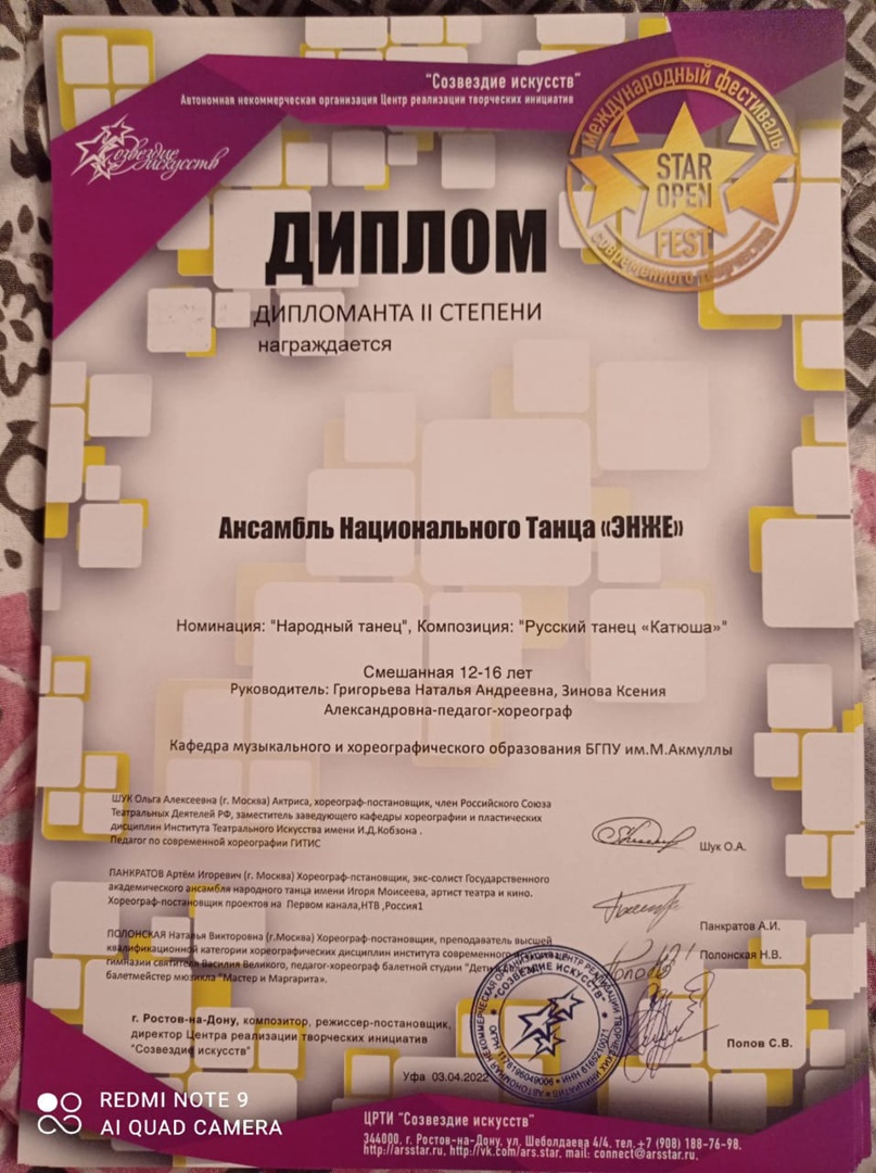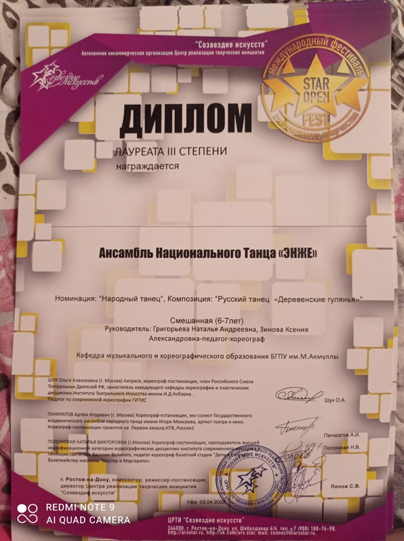 3 апреля 2022г. Ансамбль Национального Танца «ЭНЖЕ» принял участие в III Международном хореографическом фестивале-конкурсе "Star Open Fest", который проходил в Городском Дворце Культуры г.Уфа.